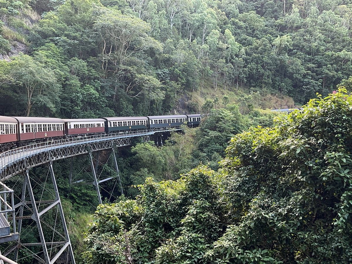 電車の中でずっと見所を説明してくれて、乗る前は電車で子供が飽きるかなと思いましたが、全然飽きずにずっと楽しめました。ガイドなしだとただの綺麗な景色ですが、19年のガイドさんは流石でした。キュランダもキュランダマップを配られて手書きでポイントが書いありました。コアラの抱っこ写真も撮れたし、アーマーダックで幸せの青い蝶が何度も見れたし、帰りのゴンドラもガイドさんと一緒で楽しめました。人生で一番楽しかったツアーでした。本当に有難うございました!!!