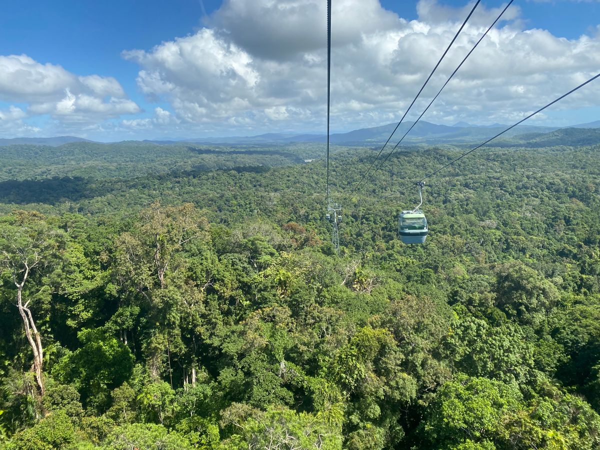 朝のチケットが取れず、お昼頃にスカイレールに乗ってキュランダ村に向かいました!