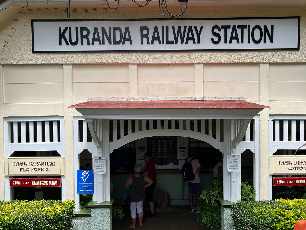 スカイレールでキュランダに行き、鉄道で帰ってきました。スカイレールからはユリシスを2度も見ることができました。ジャングルの緑の中に綺麗な青は一瞬でもすぐにわかりました。また、途中下車した2箇所の駅では自分のペースで写真撮ったり歩いたりゆっくりできます。キュランダは1日いることができたのでとても充実しました。コアラガーデンとフロッグズレストラン、買い物を楽しみました。お店がとてもたくさんあるので見ているだけで楽しかったです。一つ一つをゆっくり楽しんだので、時間が余ることはありませんでしたが、足りないということもなかったです。でも、レインフォレストに行ってアーミーダックなどをしていたら時間に余裕はなかったのかもしれません。鉄道は窓側の席に当たらなかったので残念でした。しかし窓側でも写真はなかなか上手に撮るのが難しそうでした。鉄道の乗車時間はとても長く眠くなりました。トンネルにも窓を開けたまま入るので息を止めました。でも、鉄道の旅はとても楽しかったしいい思い出です。途中下車は限られた時間なので写真ばかり撮っていないで、どんどん探索するべきです!
