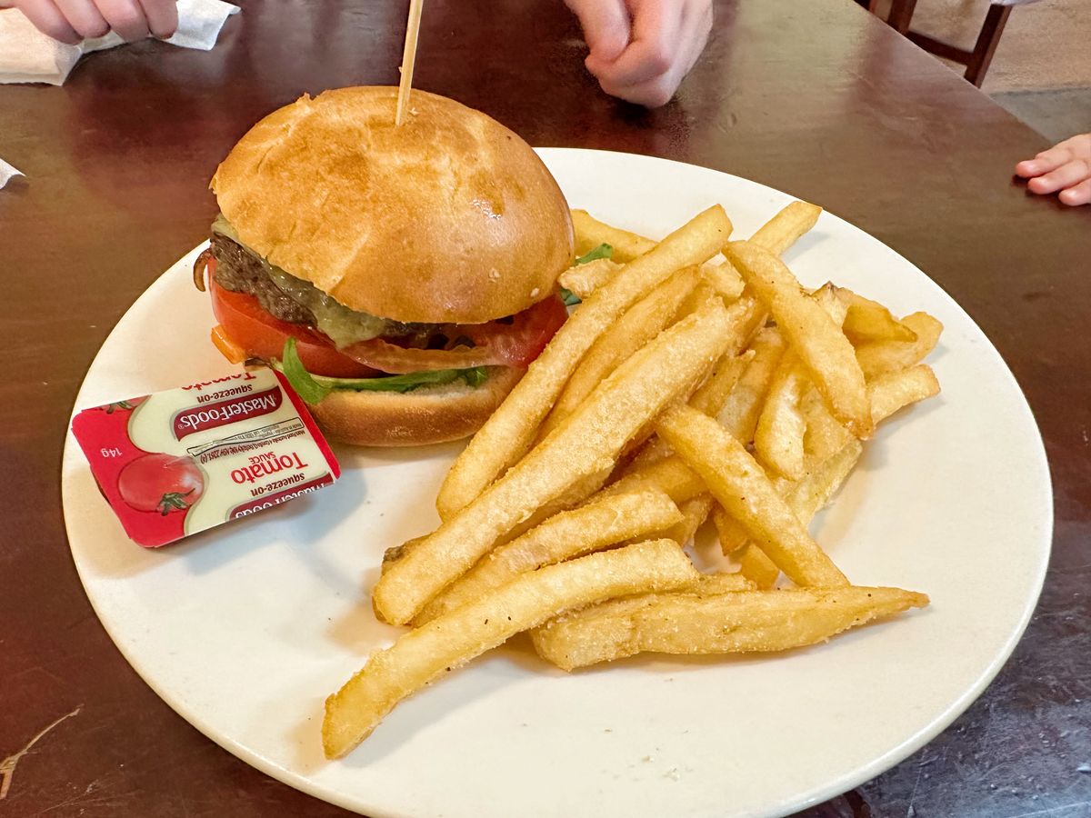 昼食のフィッシュ&チップスは柔らかい白身、ハンバーガーも肉厚で美味しかったです。ここはユリシスビールが有名みたいです。