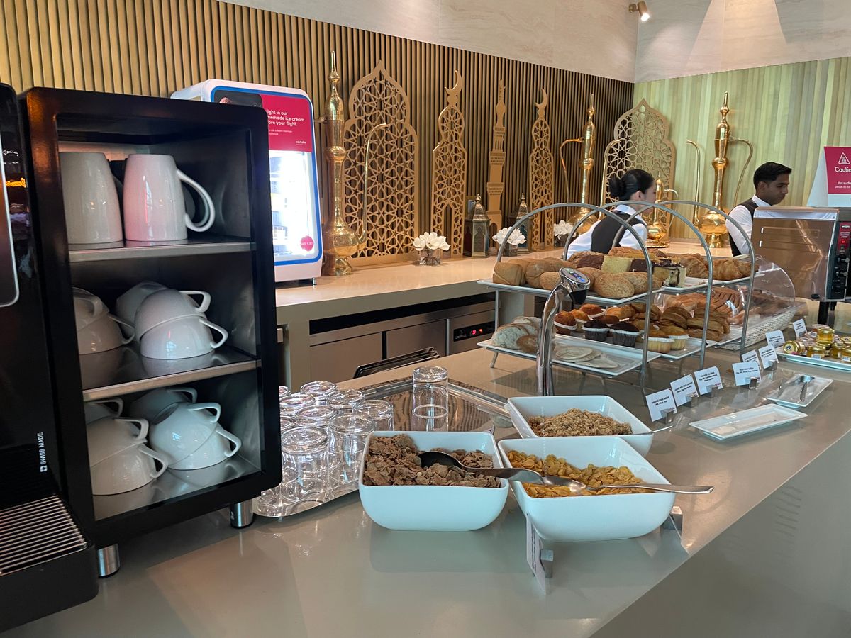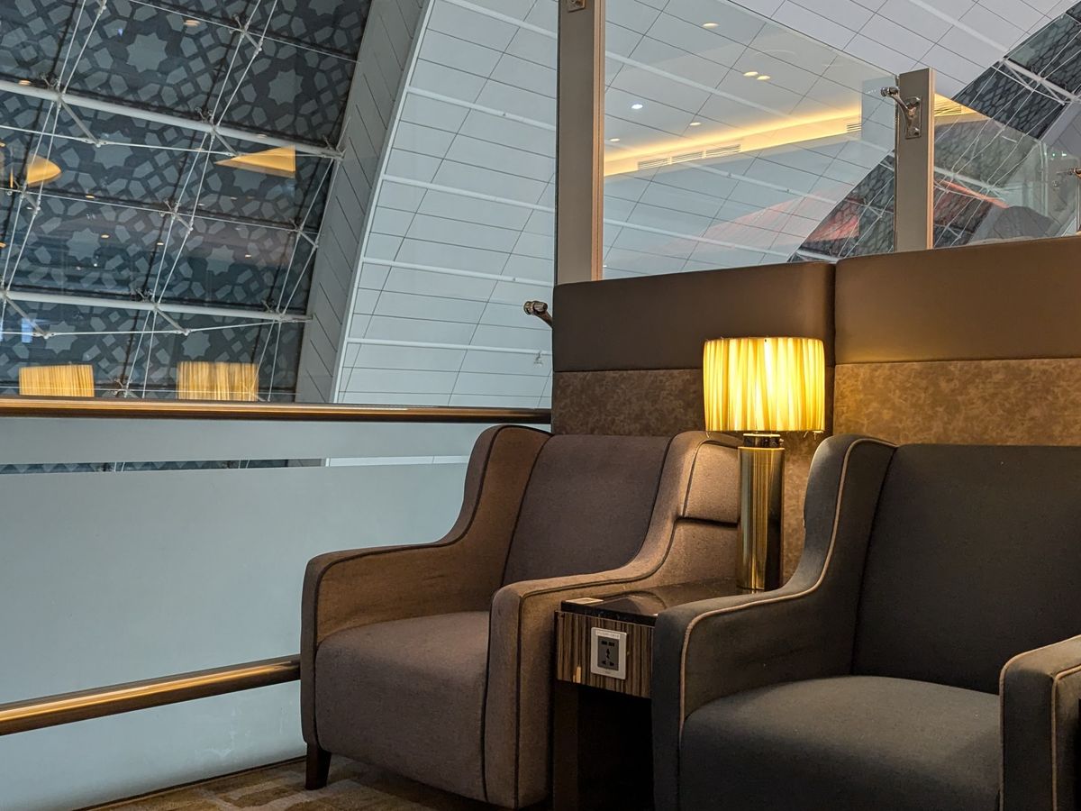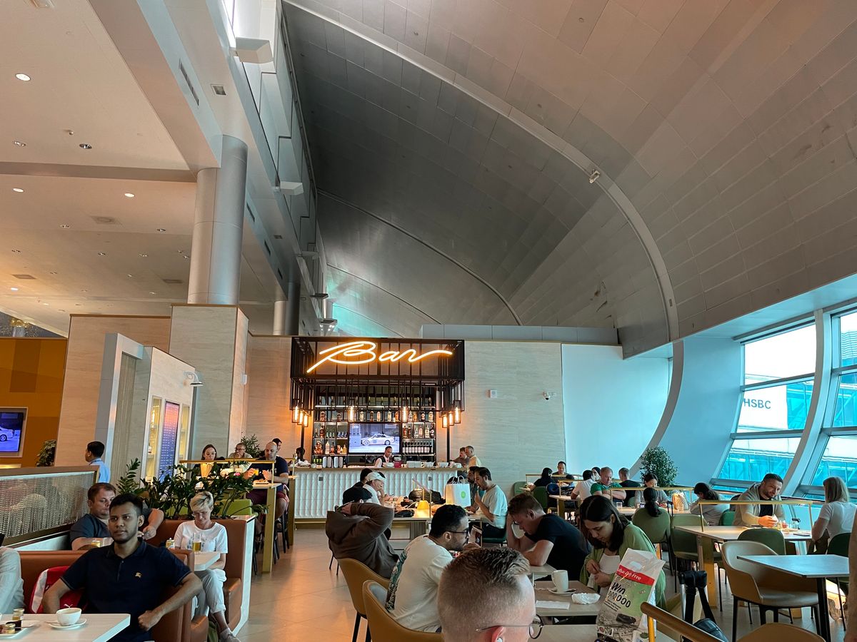 コンコースAを利用。事前予約者専用にスペースが設けられており、人は多いが席は確保できます。しかし、睡眠を取ることは難しいかもしれません。ご飯はまあまあです。アラビアンコーヒーとデーツが美味しかったです。