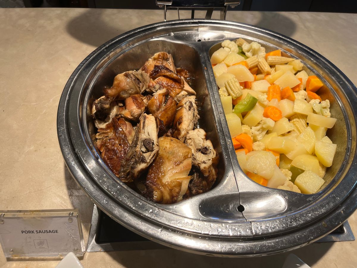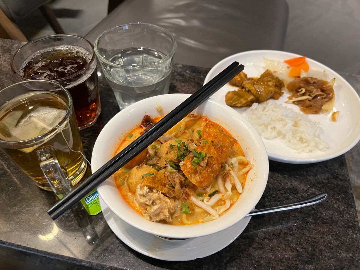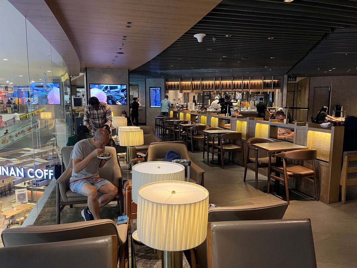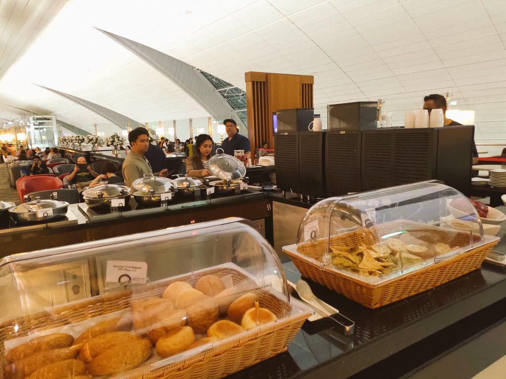 アルコールは有料で、Barは3pmから6pmまでは閉まっています。シェフが居てラクサ、チキンライス、ベジタリアンヌードルをあたたかく食べることができます。普通に美味しかったです。そのほかにフルーツ、トースト、サラダバー、スープ、5種類ぐらいの暖かい食べ物がありました。ドリンクは冷たい缶のお茶やアイスティ、コーラ、オレンジがあり、もちろん暖かいコーヒー、紅茶もありました。席数が少ないので早い時間に行くことをおすすめします。ソファは座り心地も良くリラックスできました。3時間十分リフレッシュできると思います