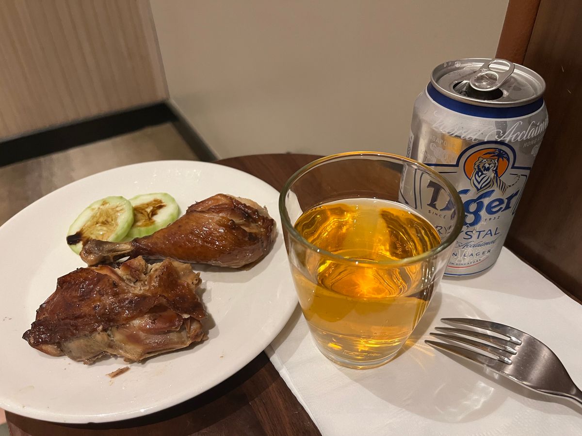 中途半端な時間でお腹が空いていなかったので、チキンをつまみにビールを飲みました。フィリピン風の味付けなのか、濃いめの醤油っぽい味が冷たいビールによく合います。