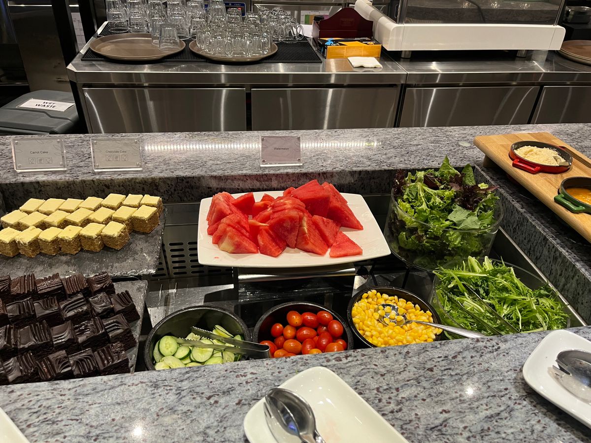 エア・アジアのクアラルンプール~羽田線に搭乗する前に利用しました。空港のセキュリティゾーンではなく、空港の商業施設エリアにあるので期待していませんでしたが、料理の種類も多く、想像以上でした!サラダバーの野菜が新鮮で、野菜不足になりがちな旅先では嬉しい限りです。料理のビュッフェはあまり種類が多くないものの、頻繁に補充してあり、味も美味しいです。デザートも種類がそれなりにあって、ケーキは甘さ控えめ。LCCに乗る前なので、たくさん食べて、飲んで、充実した時間を過ごすことができました!