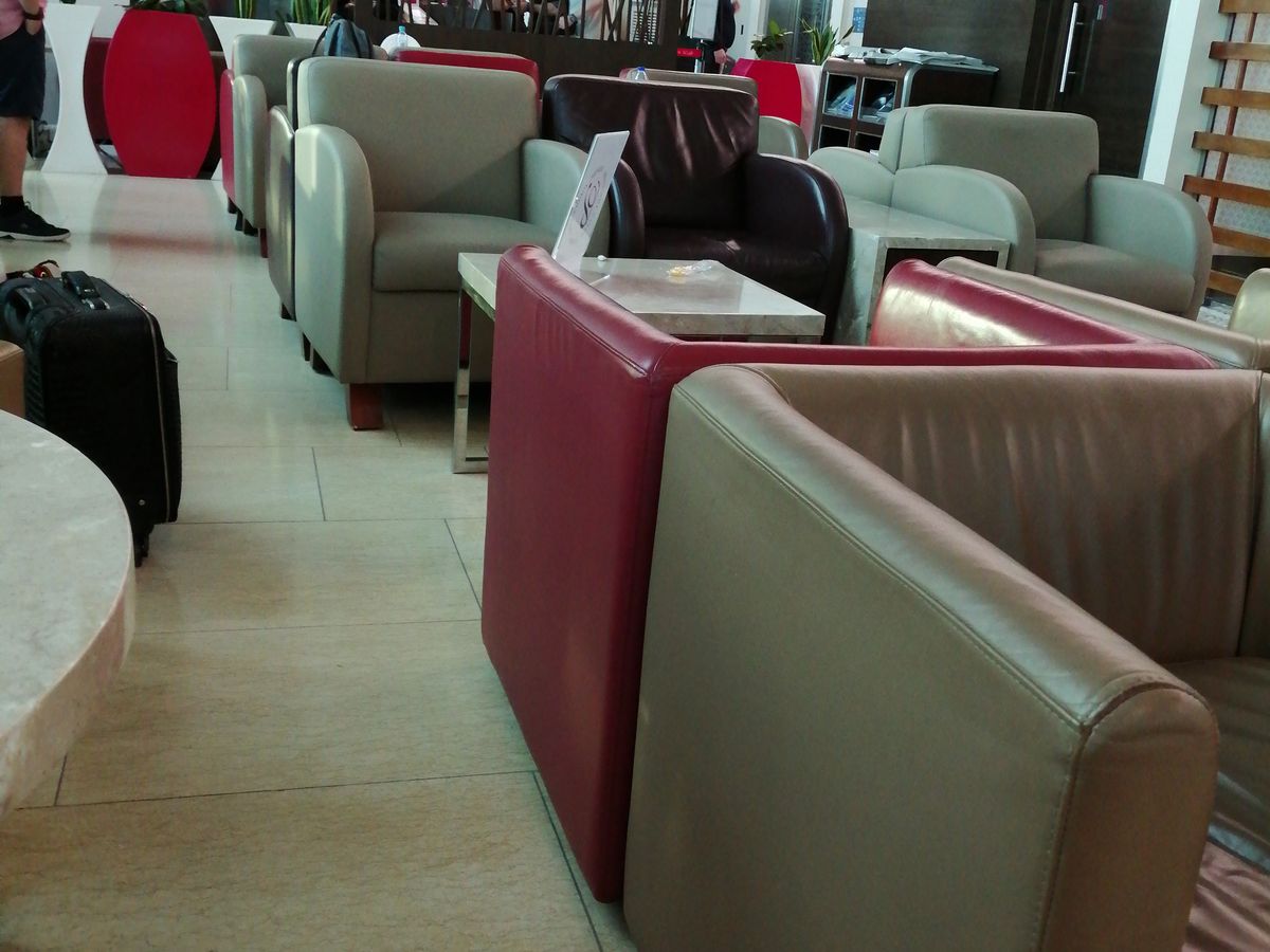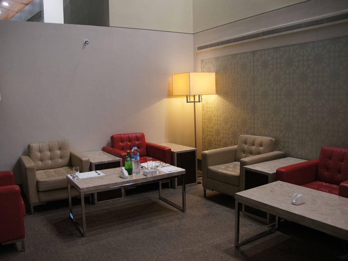ゲート近くの椅子がなかったら困ると思って予約しました。ラウンジは思っていたよりも狭く、隣の方との距離も近く、机もシェアし自分の時間をゆったり過ごすという感じではなかった・・・食べ物は人が多くなると一時的にだが種類がなくなったり、そんなにおいしいものがあるわけではなかったがアラビアコーヒーは珍しかった。あとトイレがとても狭く、これから飛行機に乗ろうという人は歯磨きや洗顔をラウンジでゆったり・・・と考えている人もおおいが狭いため他の人の邪魔にならないように外に出て歯磨きをした。全体的に落ち着けるところではなかった気がします。