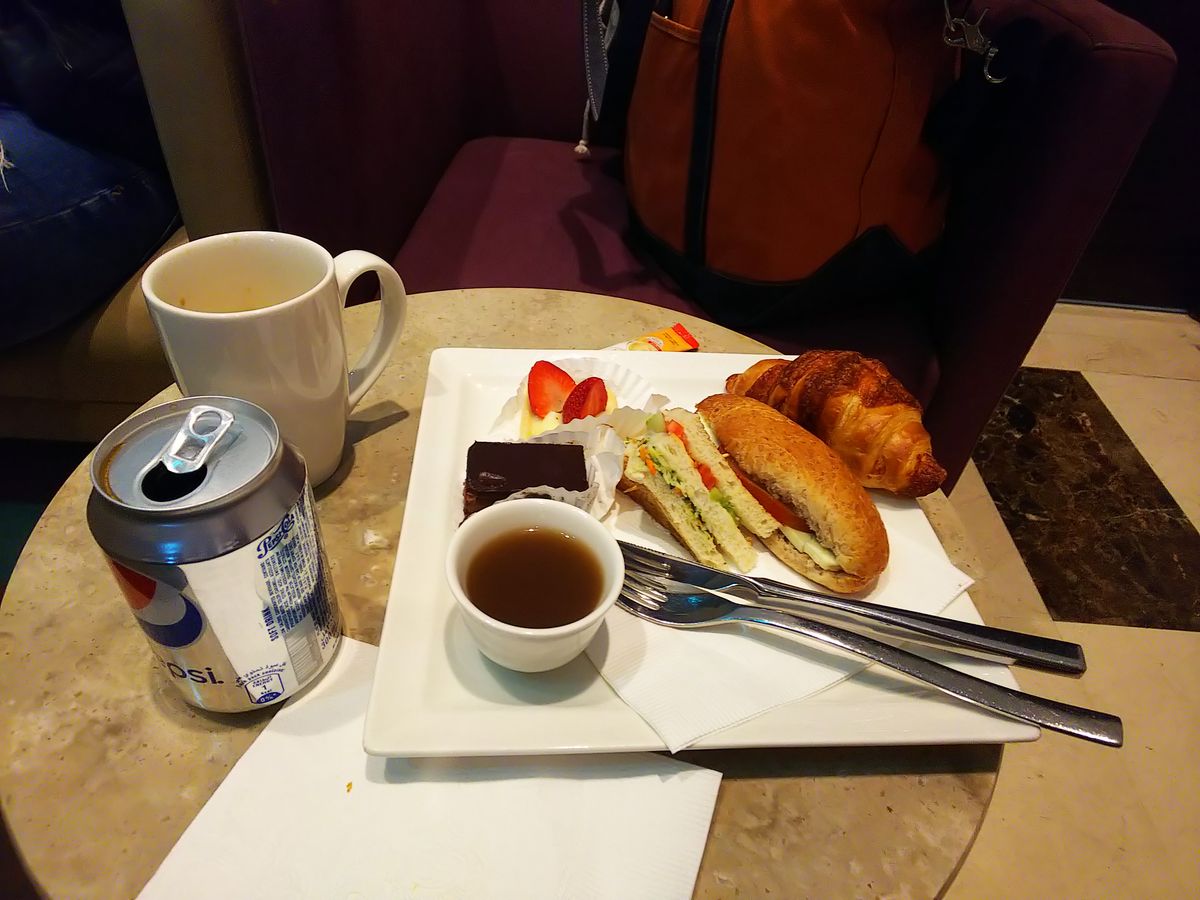 夜中の3時頃のフライトなので、事前予約してから利用しました。ところが、飛び込みの利用者も大勢受け付けていて混雑する時間帯でもあり、自分のソファーを確保するだけでひと苦労しました。人気のスイーツはすぐになくなりますが、ドリンクは充実していたので飽きずにすごせました。