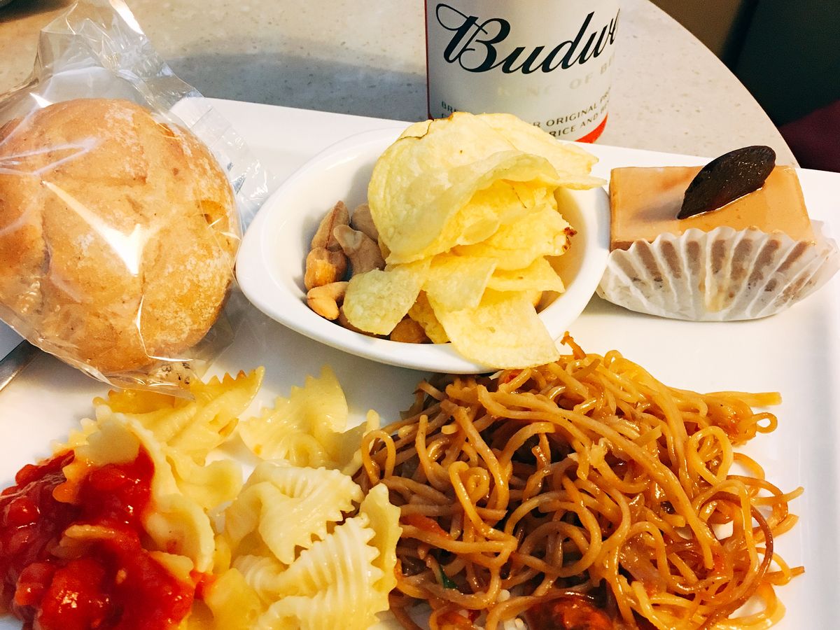 12時半に目を覚ましたとき、ラウンジは満杯でびっくり。人で溢れかえってました。食事は数は少ないけれど機内食よりは全然よい質。カレーがスパイシーで美味しかったです。