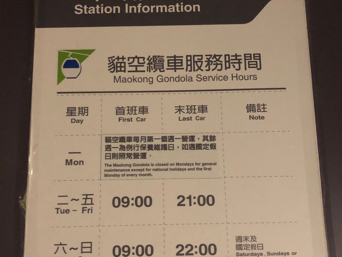 1日乗り降り自由の乗車券なので、指南宮で途中下車し観光する予定だったのですが、突然のスコールと落雷でロープウェイが運転休止となってしまいました。夕方には運転再開したのですが、暗くなってしまうので指南宮はあきらめ猫空までの往復のみ乗車しました。
