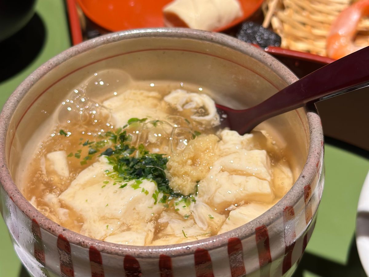 湯葉のグラタンかとても美味しかったです。白味噌のお味噌汁は出汁が効いていて見た目は濃厚そうですが意外にもあっさりして美味しく頂きました。