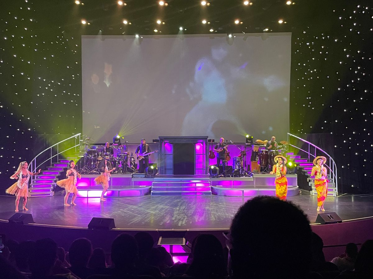 つづいてロックアフラのショーを見る為にシアターに移動、こちらも舞台と席がとても近く、生バンドによる演奏、光や映像の演出が相まってフラダンスやエルビス、マイケルジャクソンのパフォーマンス、またハワイの歌手の方の歌が迫力満点です‼︎