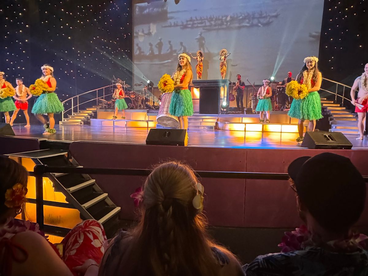 本番のショーはホールへ移動します。始まりましたら写真撮影は大丈夫ですが、動画撮影はNGです。フラだけでなく、エルビスやマイケルのショーもあり、雰囲気や盛り上がりが最高でした!