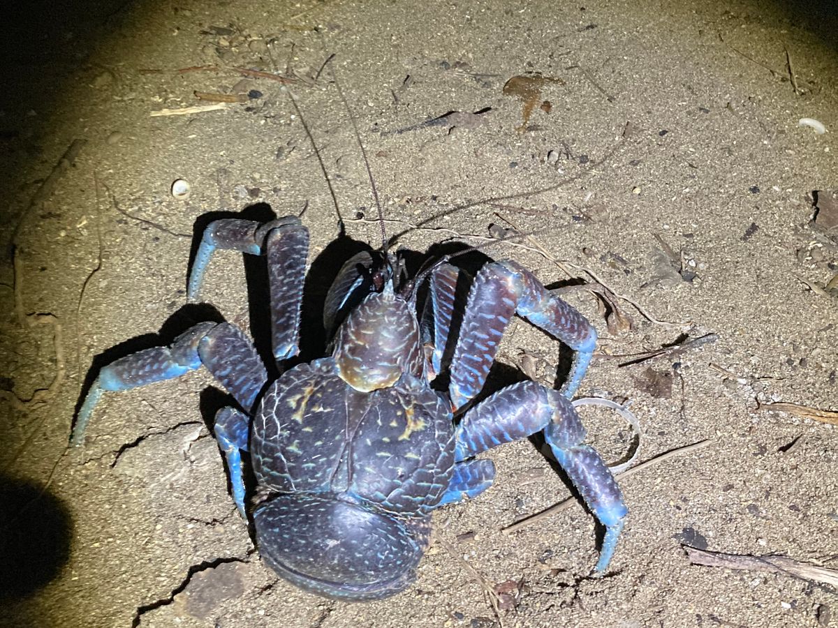 ジャングルでは、暗闇で肝試し的なドキドキと緊張感がありましたが、みんなでライトをかざしながら生き物を探すワクワクも感じ、とても楽しかったです。ヤシガニ、大きなクモ、コウモリ、カニの他、この時期でもホタルが見れました!