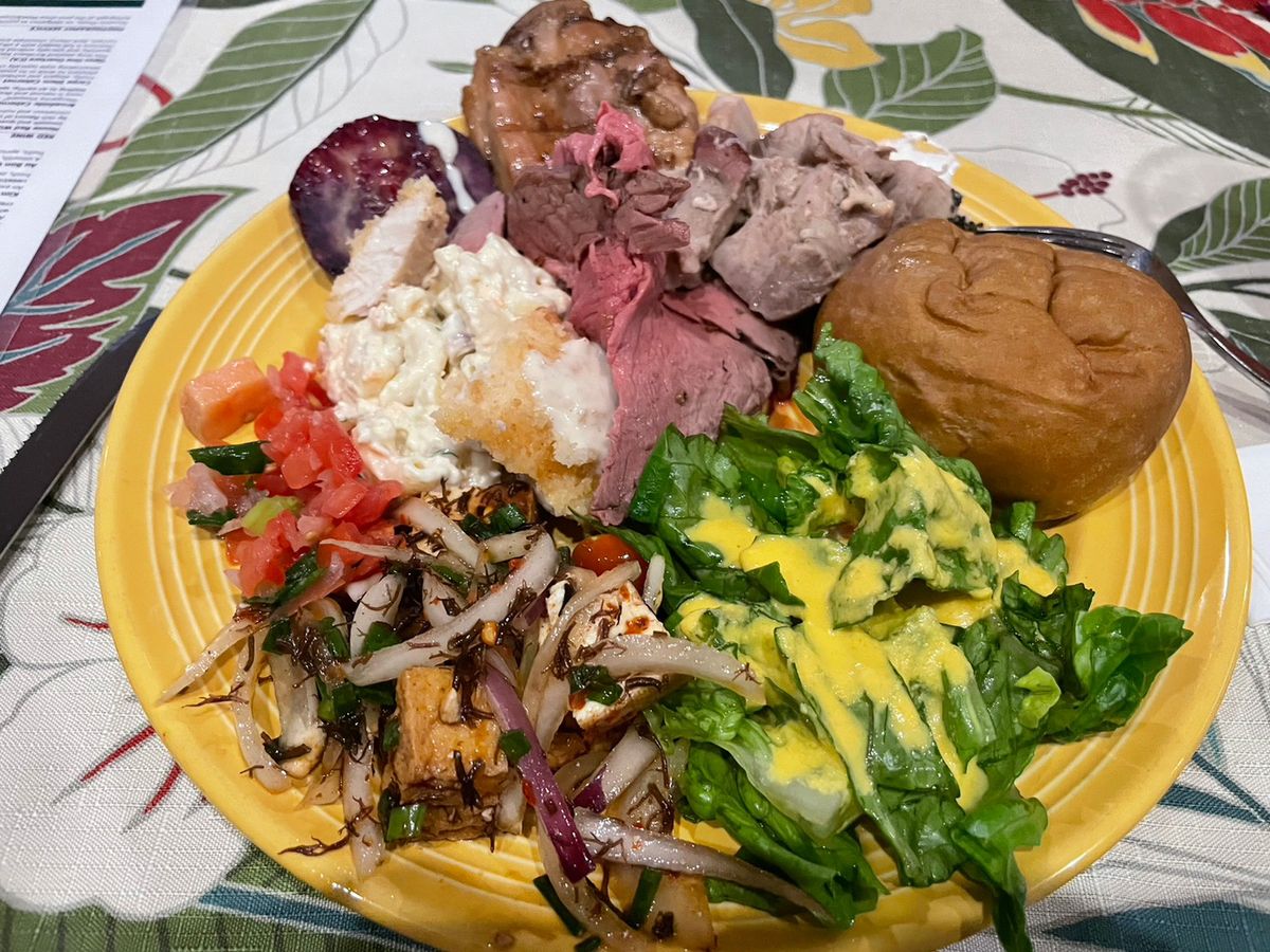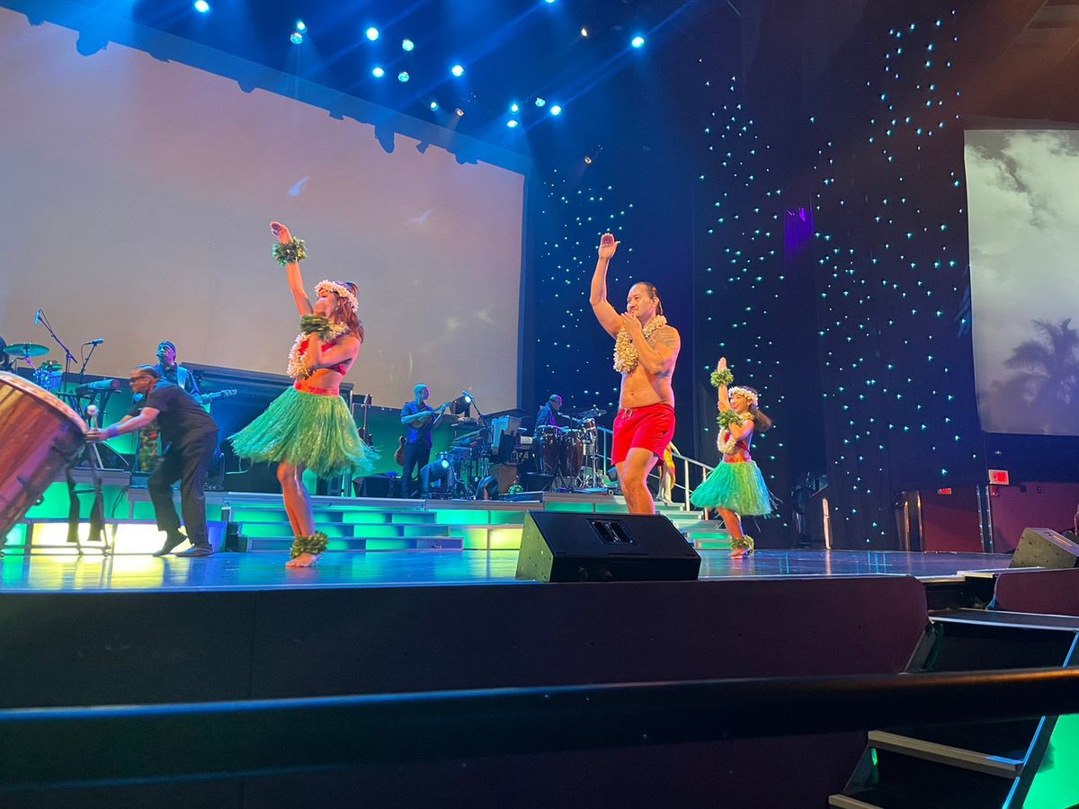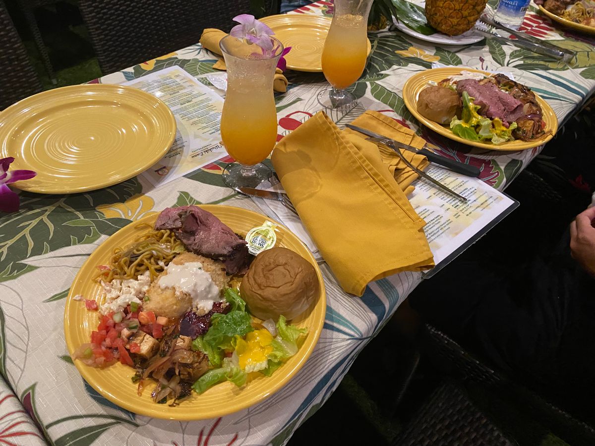 ハワイらしさを感じる美味しいご飯をビッフェでいただきました。退屈することなくショーをして盛り上げてくれたり、気を使ってくれて声をかけていただきました。