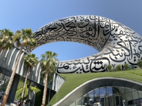 斬新な曲線の外観が目を引く博物館。9月に旅行最終日の午前10時に予約して行きました。朝から酷暑ですが、館内は冷え冷えで涼しく、できてまだ1,2年なのでとても清潔感があってきれいでした。展示入場口に並んでいると、頭のないロボット犬みたいなのがうろうろしていて朝からテンション上がりました!エレベーターに乗り込む際もまるで宇宙船に乗り込んで、宇宙へ出発→宇宙ステーションにドッキングして扉が開くみたいなシチュエーションで、スタンバイしている案内人恰好や雰囲気もなんだかスターウォーズを彷彿させる感じで本当に宇宙旅行に来た気分になれて面白かったです。アトラクションのよう。自然をテーマにした展示や近未来の風変わりな車や服、火星での暮らしなどの構想など興味深く面白かったです。2時間かけてじっくり回りました。