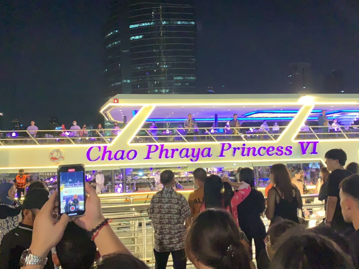 ラマ8世橋で折り返してすぐくらいの頃にテーブルの撤収開始と別会計のお酒代の伝票が来たので、もう終わりかと思ってしまいましたが、そこからアイコンサイアムを過ぎてアジアティークまで行ってまた折り返しでした。