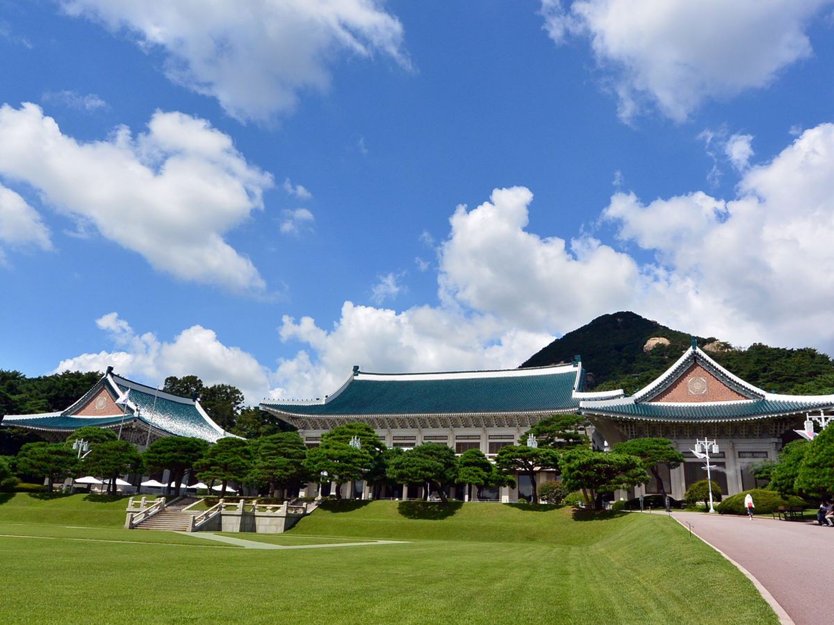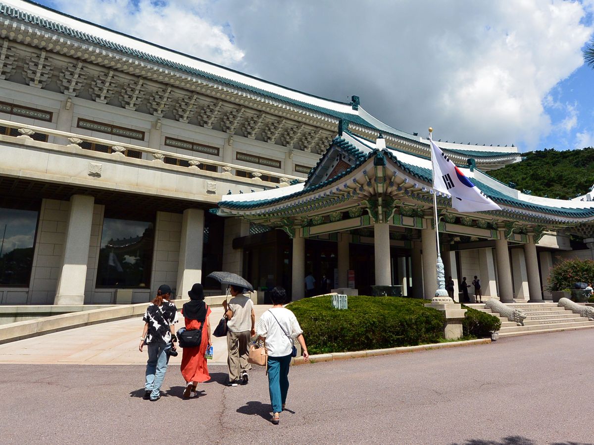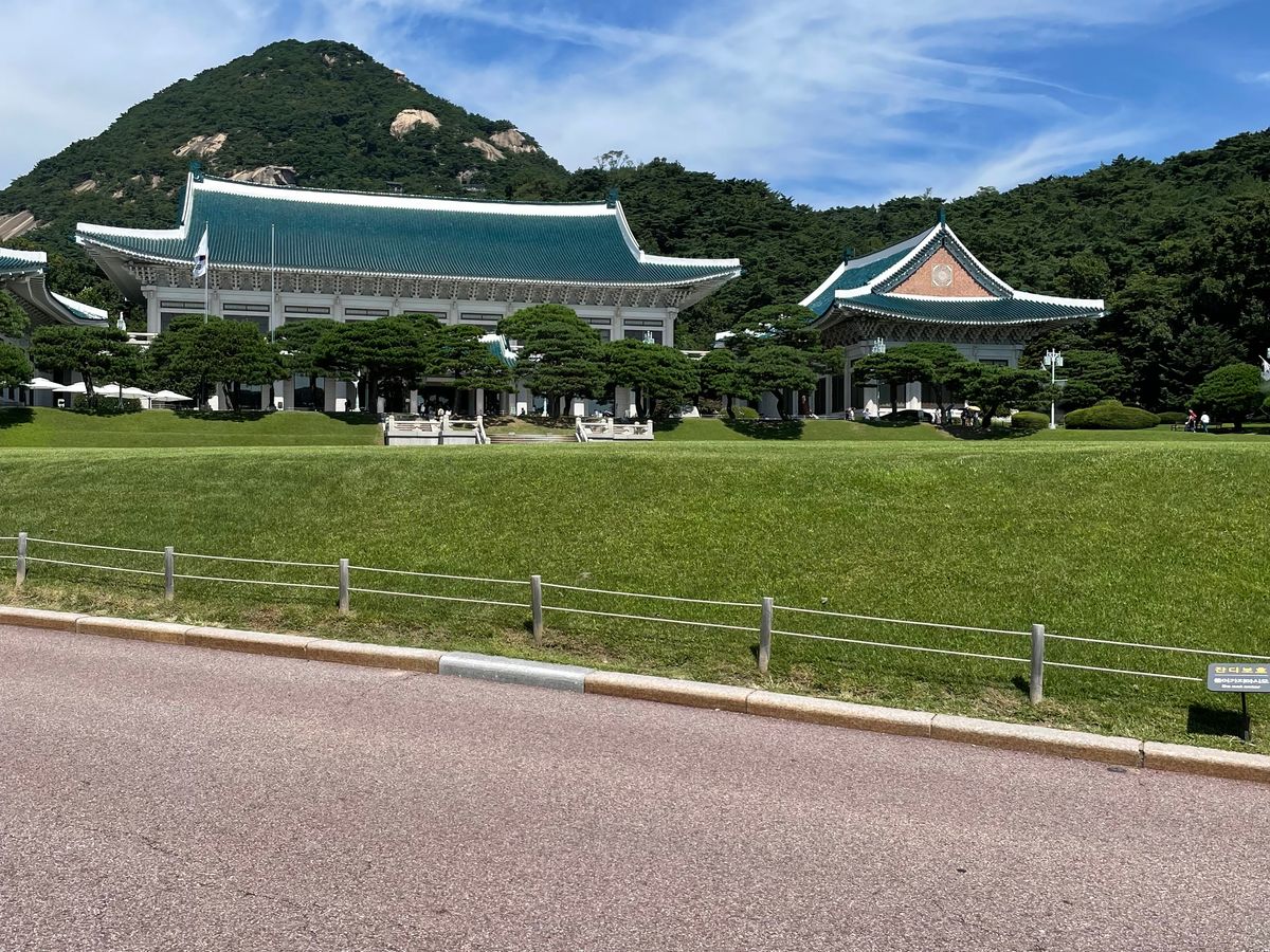 ツアー開始でいきなり光化門前の守門将交代式に圧倒され、故宮博物館で韓国史に触れた後は、壮大な勤政殿、慶会楼、慈慶殿を順に見学します。庭園を過ぎて神武門を出ると、目の前は青瓦台。青瓦台は個人的にこのツアーの最大目標だったので、ドキドキしながら入場しました。
