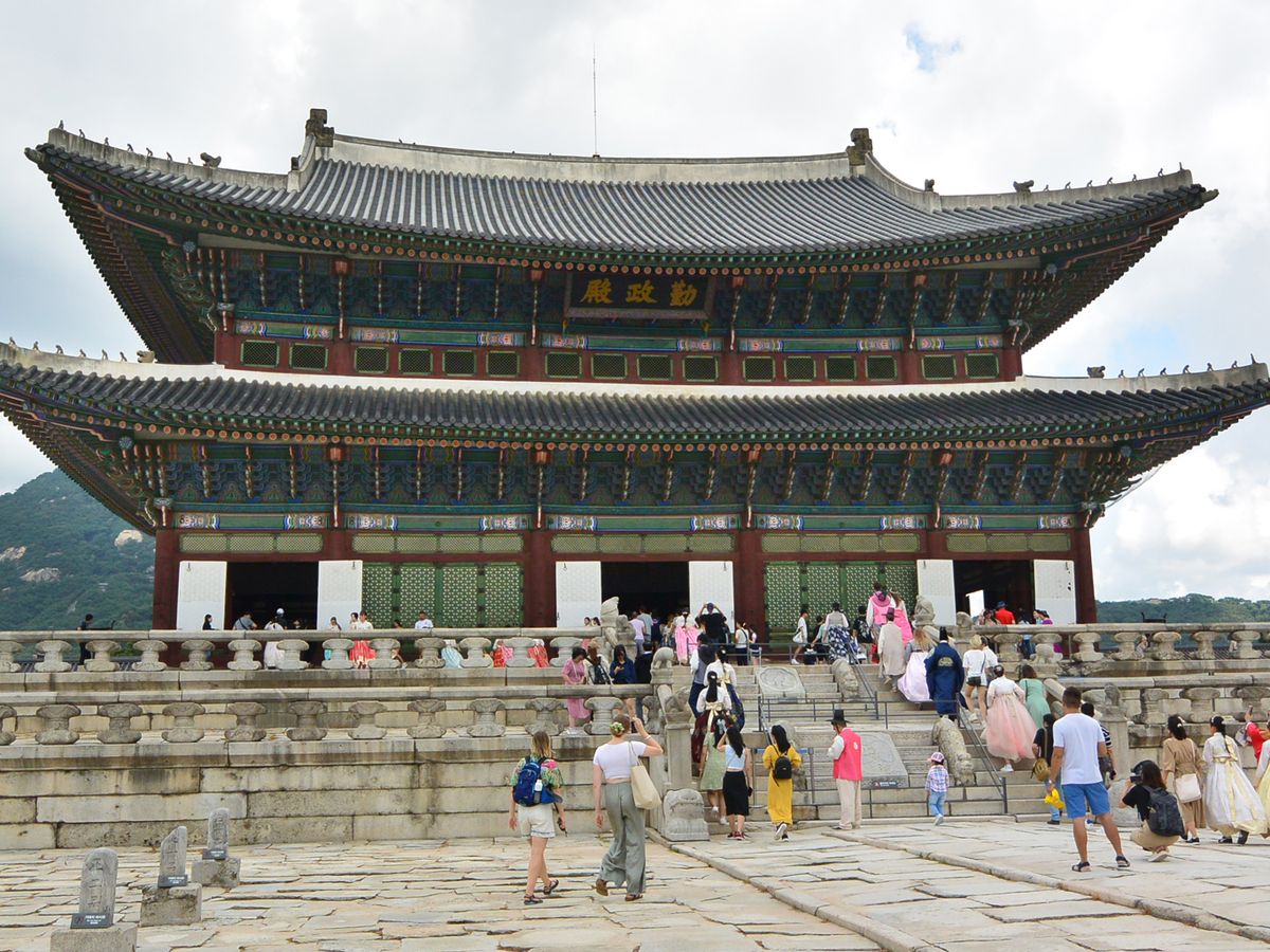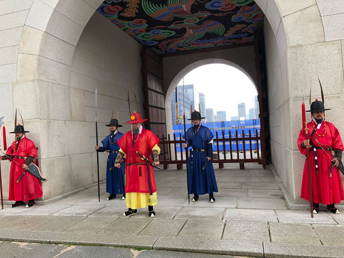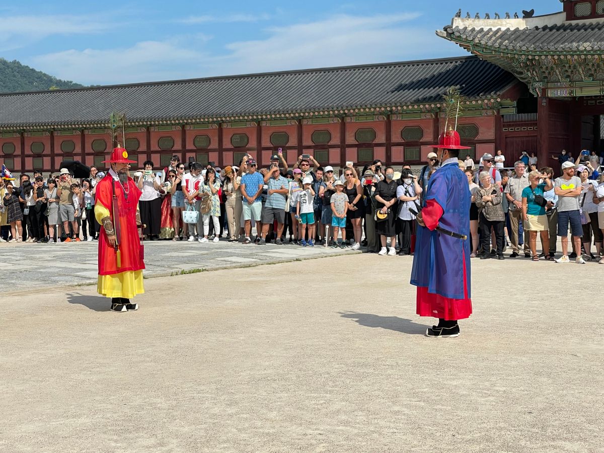 ツアー開始でいきなり光化門前の守門将交代式に圧倒され、故宮博物館で韓国史に触れた後は、壮大な勤政殿、慶会楼、慈慶殿を順に見学します。庭園を過ぎて神武門を出ると、目の前は青瓦台。青瓦台は個人的にこのツアーの最大目標だったので、ドキドキしながら入場しました。