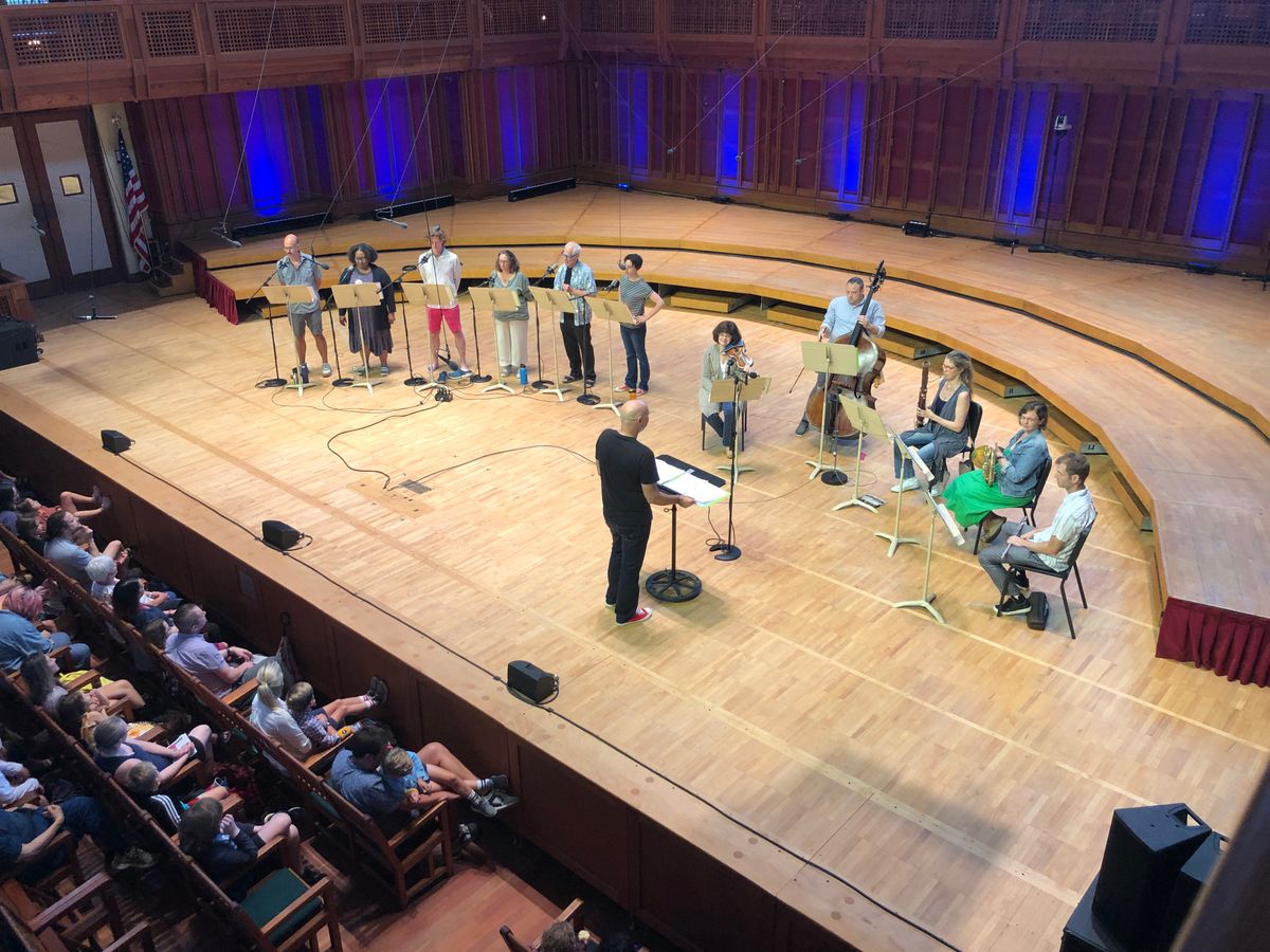 ノーマンロックウェル美術館は、こじんまりとした美術館ですが、彼の作業場見学や雑誌のイラストなど思わずポストカードも何枚か購入。その後はイラストにもあったストックブリッジを散策しました。今回無理をお願いしたガイドさんがボストン在住43年のベテランで、とにかく音楽、美術に詳しい方で色々教えていただきながらだったので、より楽しさが増しました。タングルウッドでも、私たちのために折り畳みの椅子や雨対策の準備と、上手く屋内のプログラムと野外を組み合わせ、短い時間ながら色々体験できました。