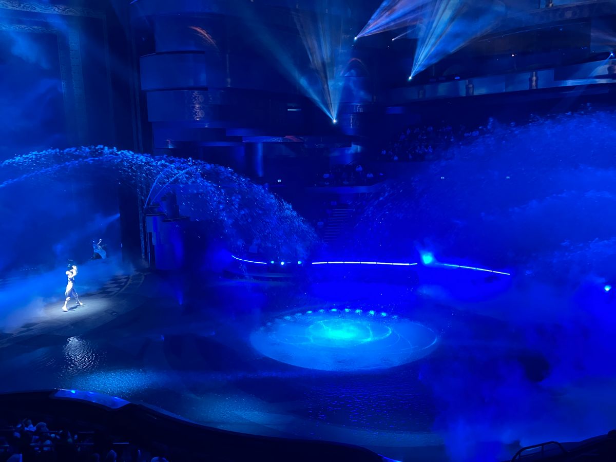 『ラ・パール・バイ・ドラゴン(La Perle by Dragone)』ショーに参加しました。18:30開演で、17:30に到着。実際に、席に着席出来たのは18:00頃。開園すると、休憩なしのノンストアップなので、トイレは事前に済ませておくのがよい。水と音と光とパフォーマンスの融合でとても良かったです。セリフは特にないので、言葉がわからないとかの心配は不要。席は、ブロンズ席でしたが、その中でも一番前の列だった為、よく見えました。