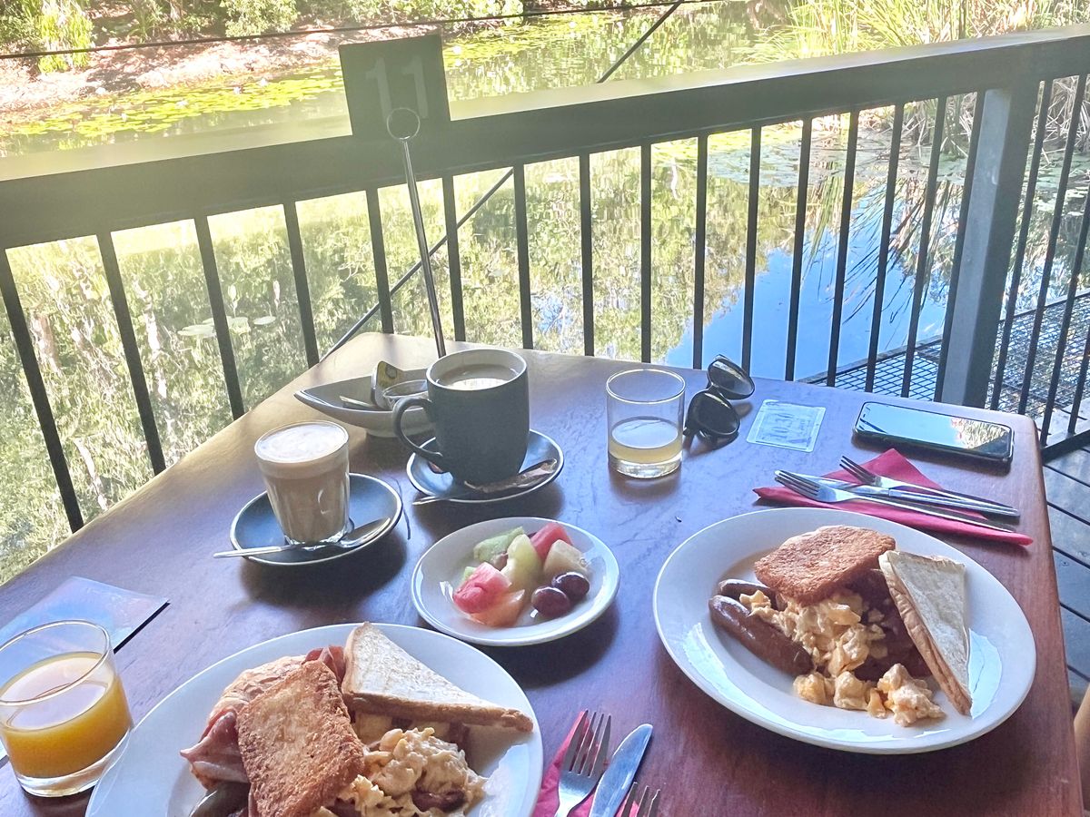 コアラとの朝食は私たち1組と、日本人の団体客のみでした。団体客の方とは入れ違いだったので、お互いにコアラは独占状態で自由に撮影できました。朝ごはんはとってもボリューミーで、フルーツと飲み物はおかわり自由でした。