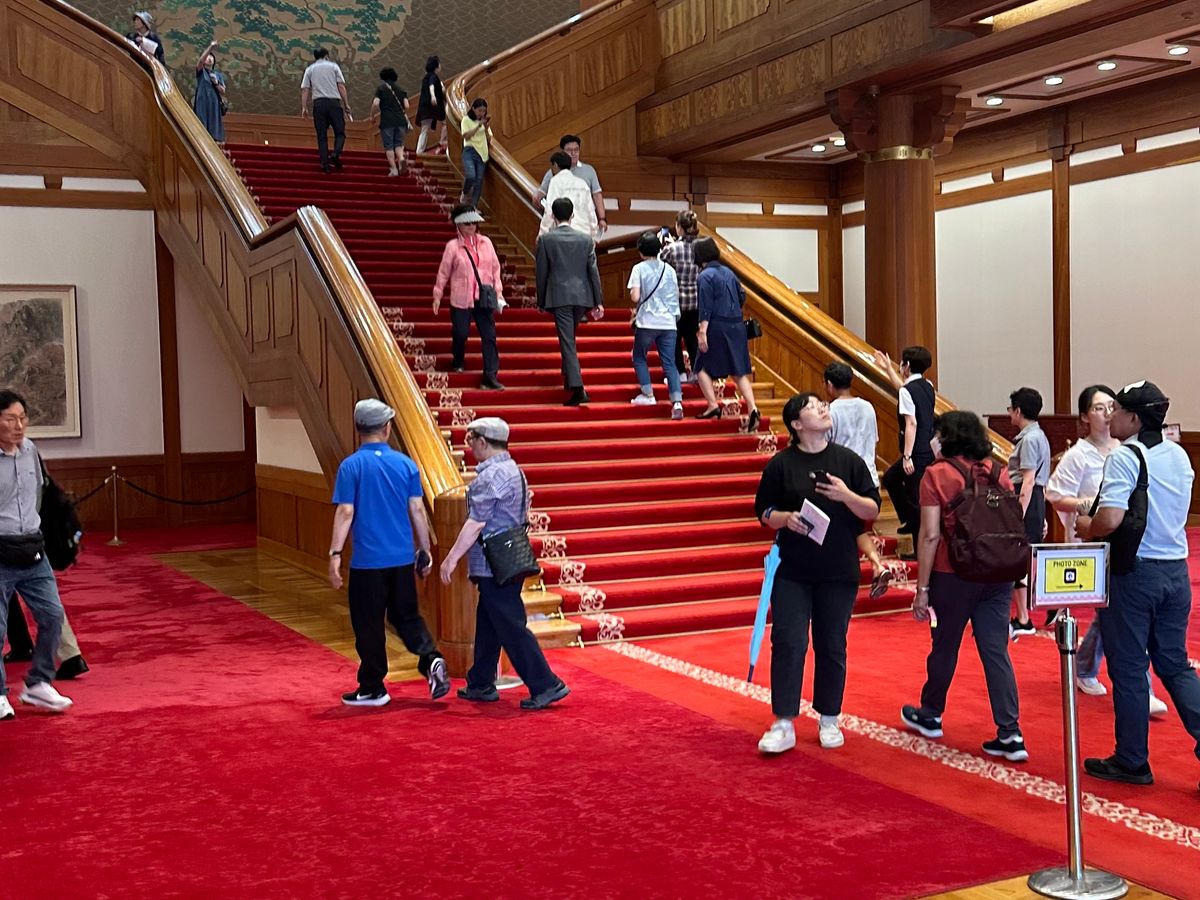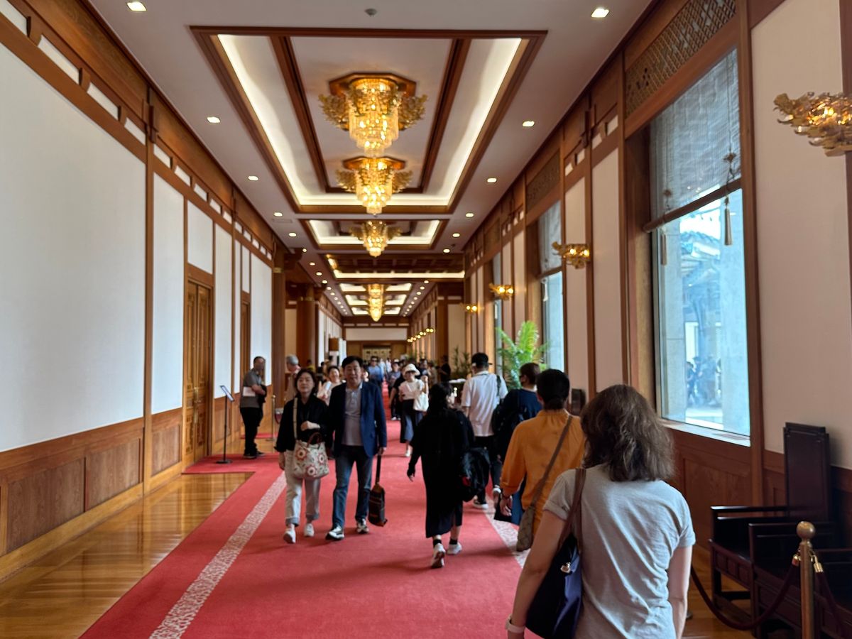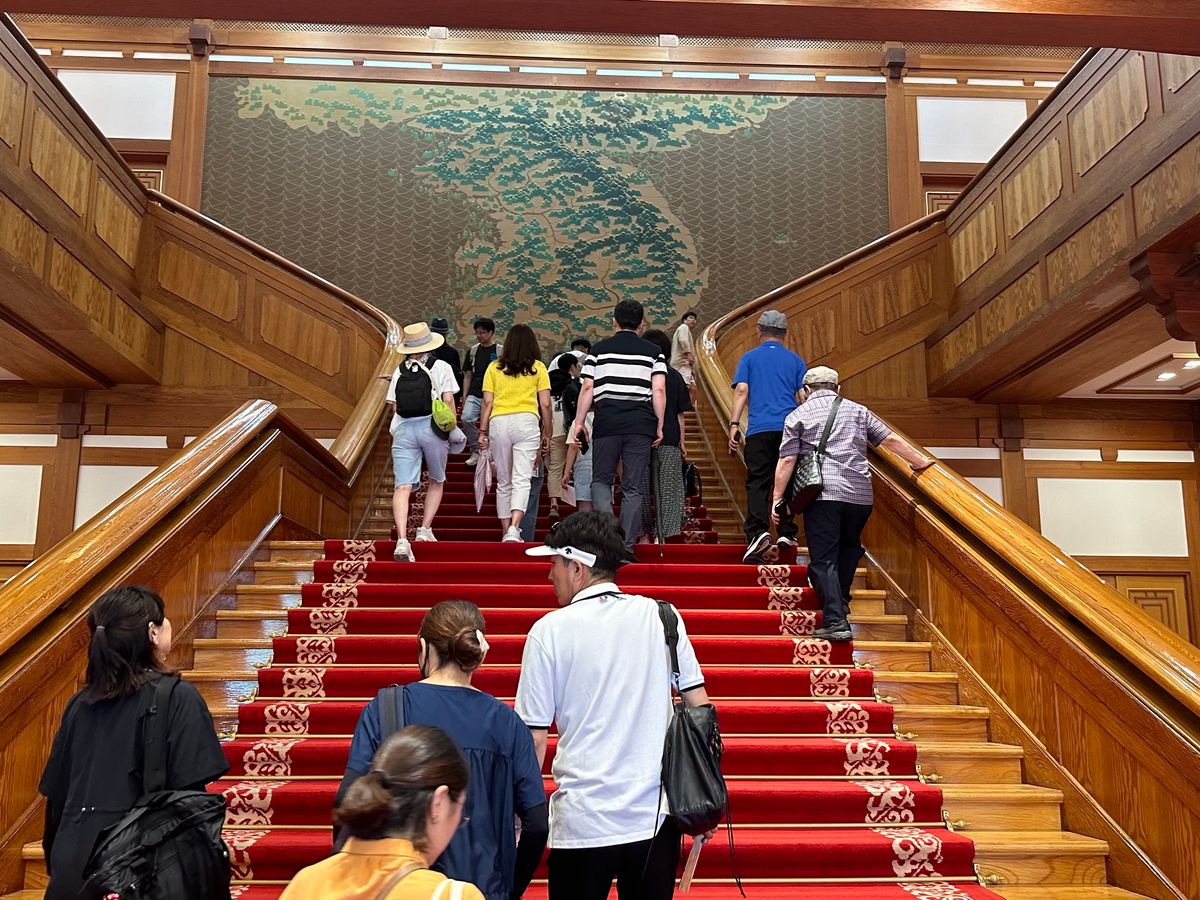 2022年5月まで韓国大統領府が置かれていた青瓦台、一般公開になると大統領官邸が見られるとあって地元韓国人の大人気スポットに。行列は当たり前のこちらは一般公開から1年経っても大行列を目にしました。我々が景福宮をガイドさんの案内で見学している間に、もう1人の方が入場の行列に代わりに並んで下さるという技を使って、我々が到着する頃に行列の最前列まで進んでいました、そのおかげで待ち時間なしで入場できる素晴らしさ。