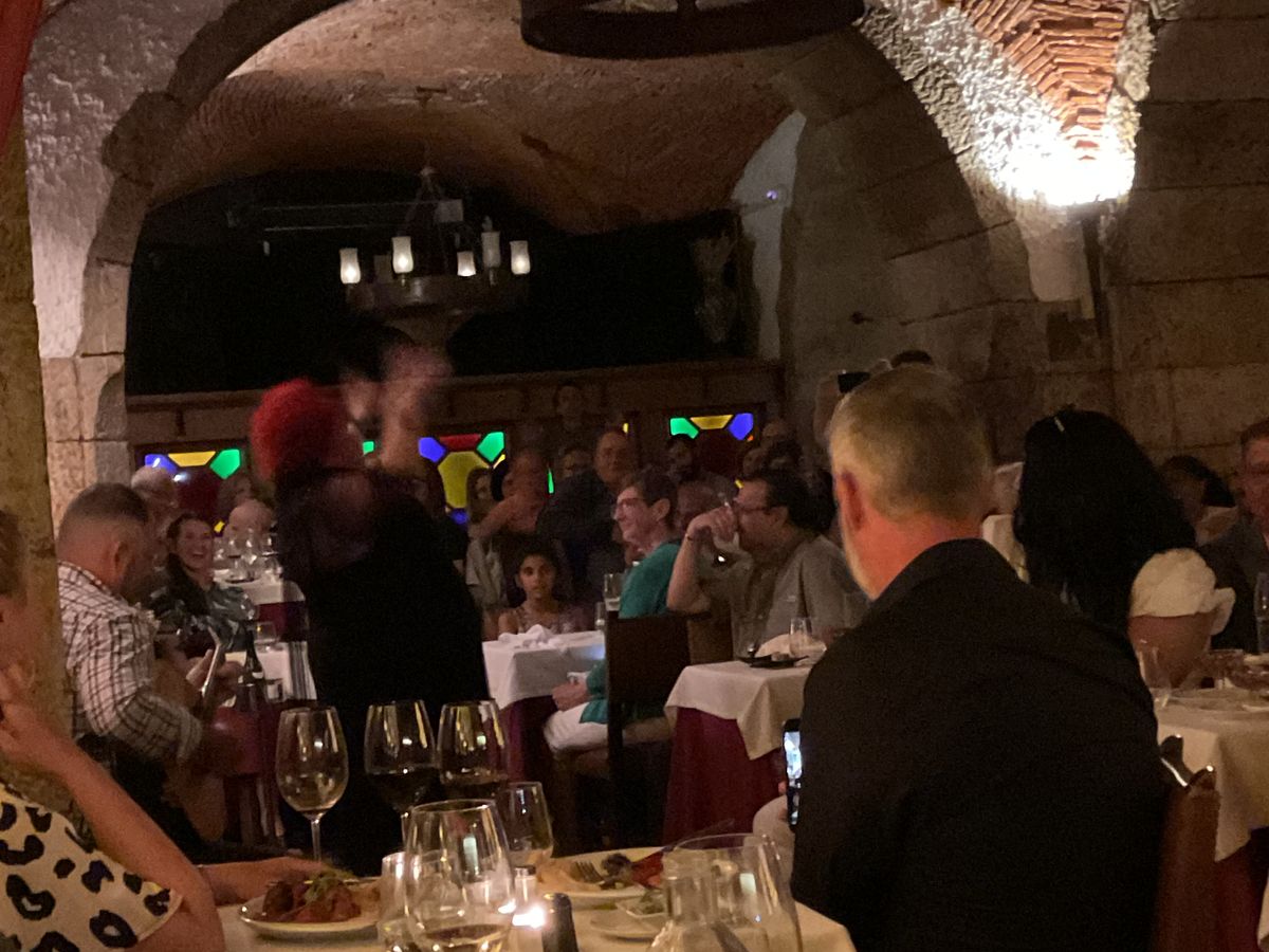 定年記念一人旅の女性です。夜遅くまでの外出は気が引けるし、Fadoは聴いてみたかったので参加。英語ツアーで、同じくどうなの年代のブラジルの女性と仲良くなりました。Fadoが好きな女性の解説付きで楽しかった。3人のFadoを聴いた後、10時過ぎから夜のリスボンをバスで回り、ホテルまで送ってくれました。一人旅の方には特におすすめです!