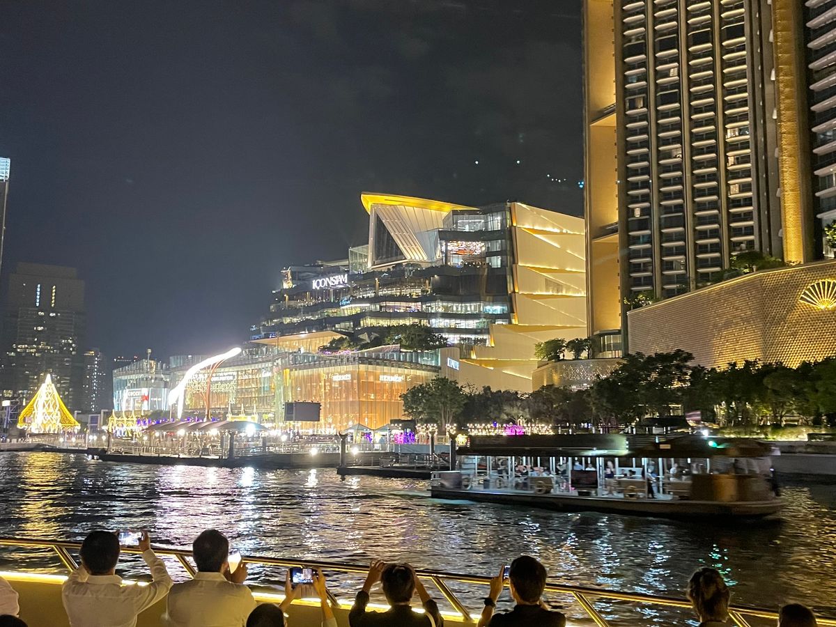 春節もあって、アイコンサイアムの中の受付はかなり混雑気味。バウチャーを見せてチケットと引き換えたら船乗り場へ!間違えた乗り場番号のところに行ってしまったけど、スタッフの方から正しい場所を聞いて無事に乗船。料理は30種程度。パッタイとエビの炒め物がおいしかった!サックス奏者と歌い手の二名でのライブミュージックで盛り上がりつつ、綺麗な夜景を楽しめたのでとても満足!
