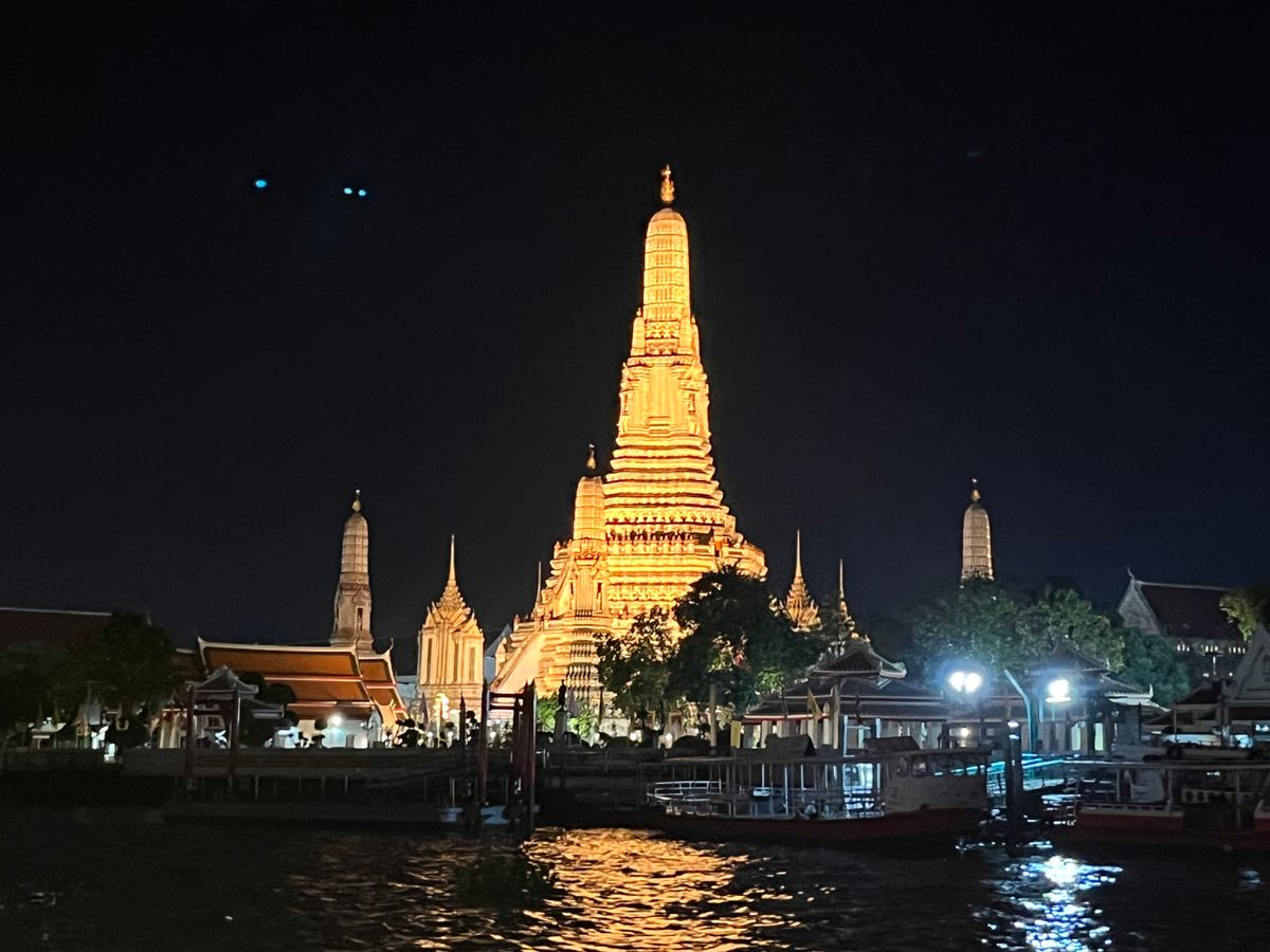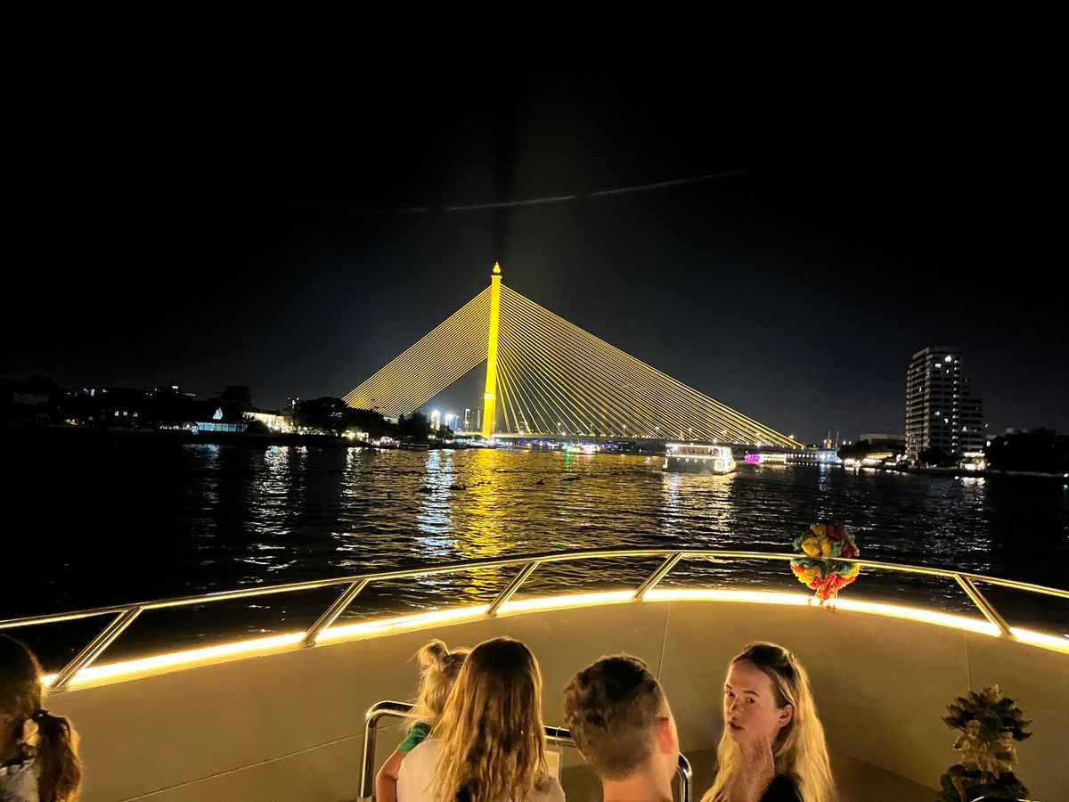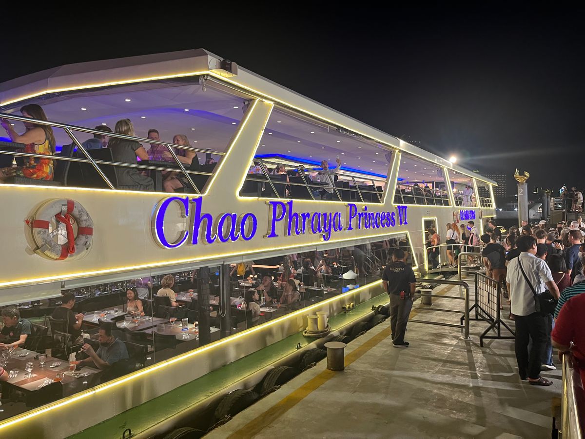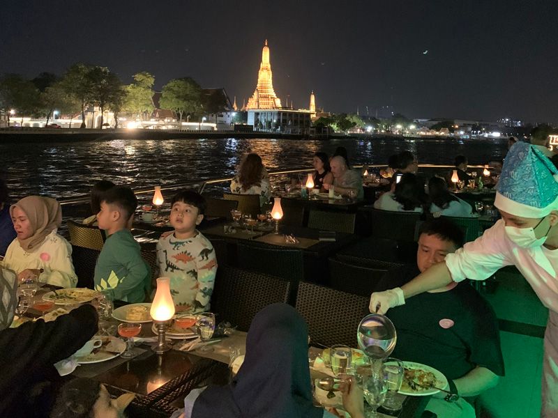 日本人3人、タイ人3人でしたが、全員初体験。1人1000バーツととても安いツアー代金で、不安はありましたが、料理は、種類も量も味も良く期待以上で大満足です。また、船上から見るワットアルンの夜景は特に素晴らしく、しばしみとれてしまいました。船内の演奏や踊りも素敵で至福の時を過ごせました。本当におすすめのツワーです。次回も是非利用したいと思います。
