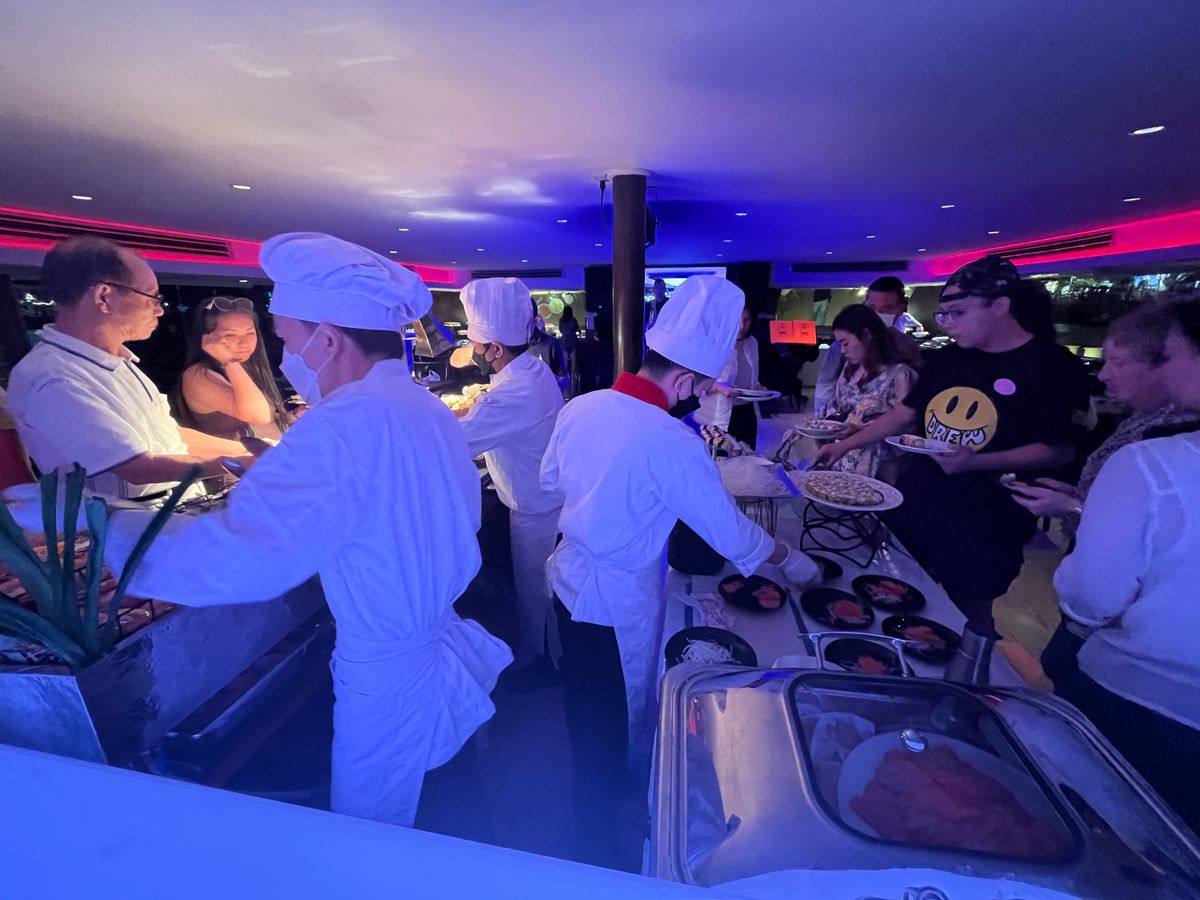 最初にビュッフェでお腹を満たして、移動し、ホールでショータイムが始まります。