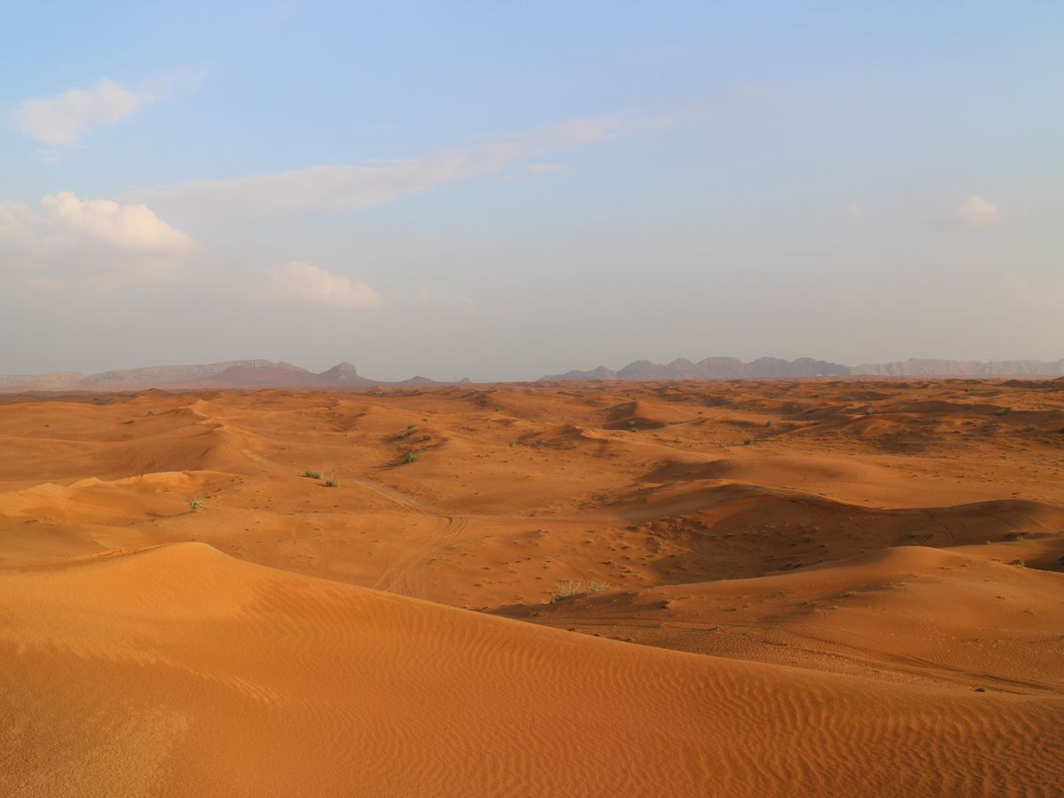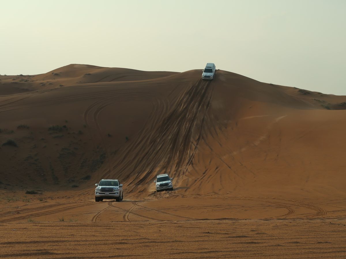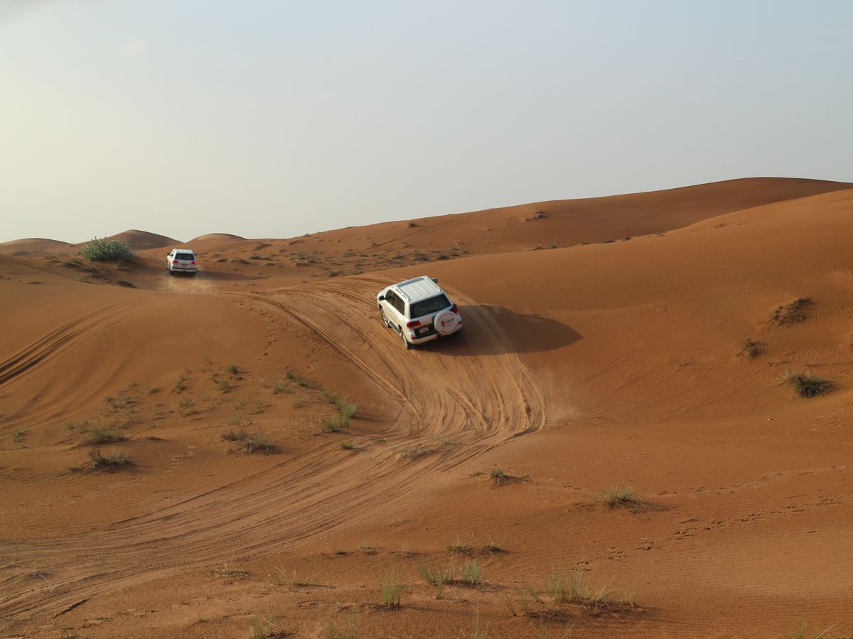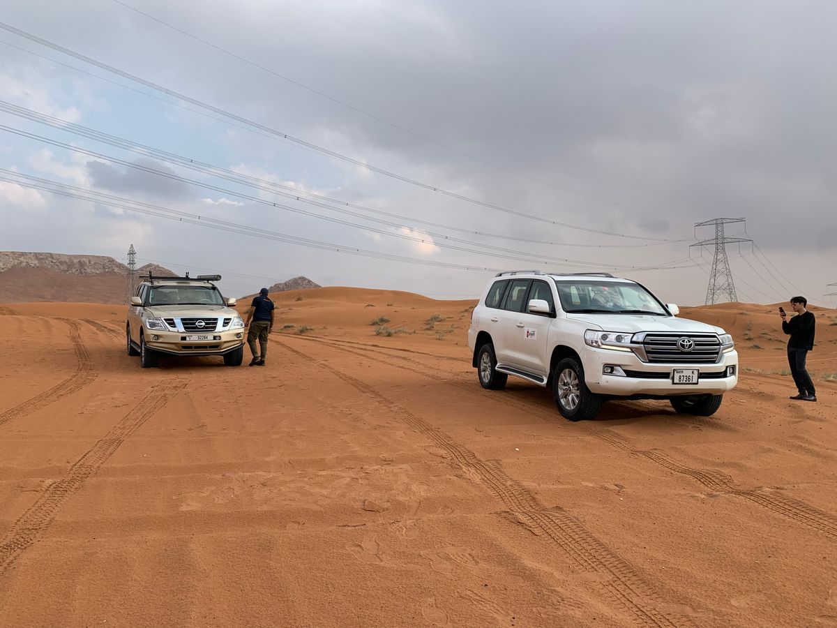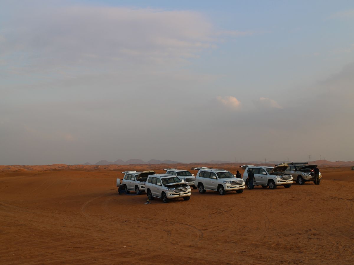 ドバイ市内から車で1時間ほど走ったところで砂漠の中に入って行き、車のタイヤの空気を抜きながら他のツアー参加者の車が揃うのを待ちました。