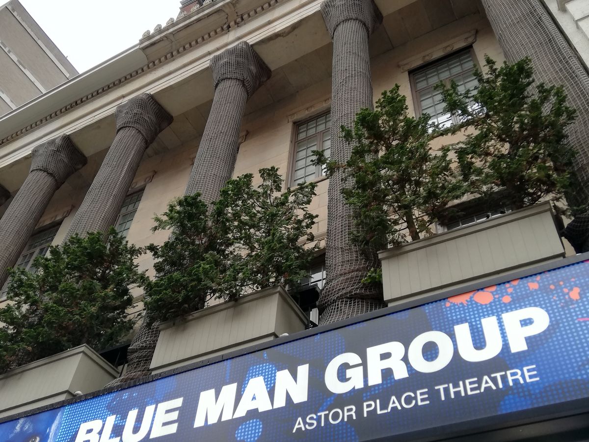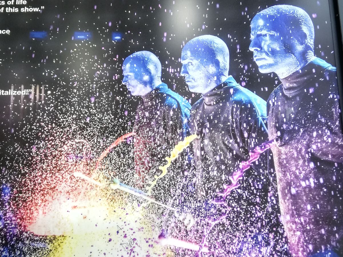 日本公演を観た事が無かったので、初めてのブルーマン!もっと音楽がいっぱいかと思ってましたが、かなりお笑い寄りでした。笑える部分もいっぱい有りましたが、食べ物を粗末にしたり、遅刻してきた観客をイジリ倒したり、観客にペンキかけてキャンバスに人型作ったりと、お笑いがちょっと古典的。子供達が舞台に向けて叫んだり、観客一体型な所は、さすがアメリカって感じでした。日本で観た事ある友達に、バナナピューレが飛んでくると聞いてたので、ちょっと潔癖な私は、2階席にしましたが、1階2列までは、皆さんカッパ着てて、それでも汚れてる方もいたので、2階にして大正解だったと思います。