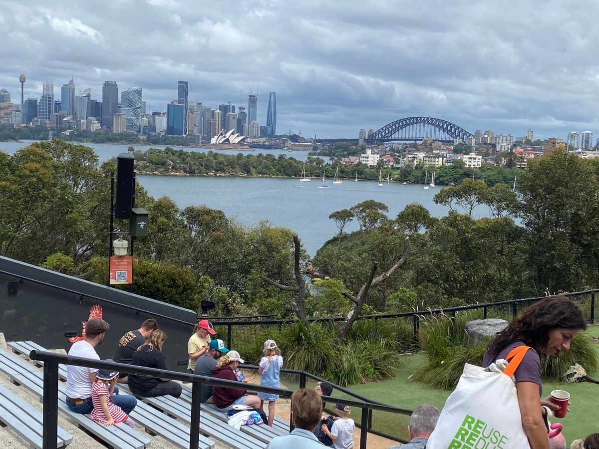 サーキュラーキーからタロンガ動物園行きのフェリーで15分程です。バスが待機しており数分乗ったら園の入り口に着きます。かなりの坂道なので歩いて行くのは大変だと思います。動物園では色々な動物を見る事ができましたが、コアラがとても可愛かったです。ランチが食べれるレストランも有りますが、外から持ち込んでベンチで食べている家族連れもいました。放飼いにされている七面鳥にランチを持っていかれている場面を目撃しましたので七面鳥にはご注意下さい。当日は現地の沢山の小学校から遠足?で訪れていて園内はかなり賑やかでした。無料のイベントで鳥のショーを見る事ができました。園の向こうにはベイを挟んでベイブリッジ、オペラハウス、高層ビル群などシドニーの素晴らしい景色が見れて素敵でした。園内では無料のゴンドラにも乗れてそれも楽しかったです。帰りはそのゴンドラでフェリーの港まで行けます。