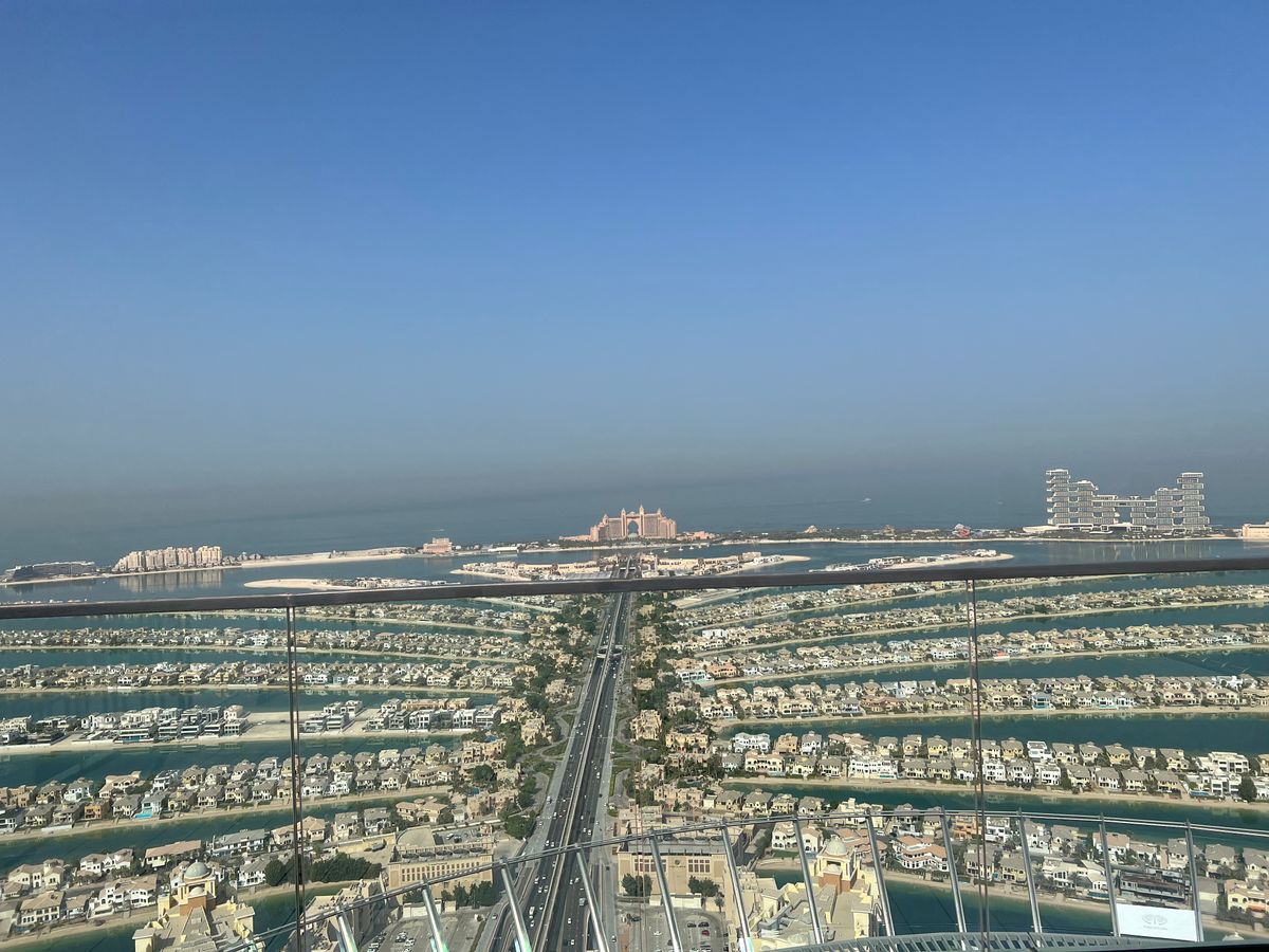 ドバイ到着→ホテルに荷物を置く→9時にモノレールに乗って目的地へ!朝イチで行ったので、ツアー観光客一行と被ることもなく優雅に展望台からみれることができた!