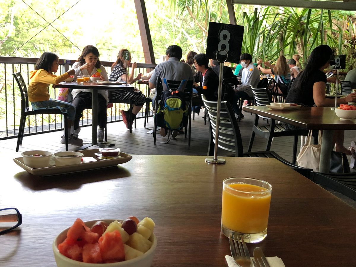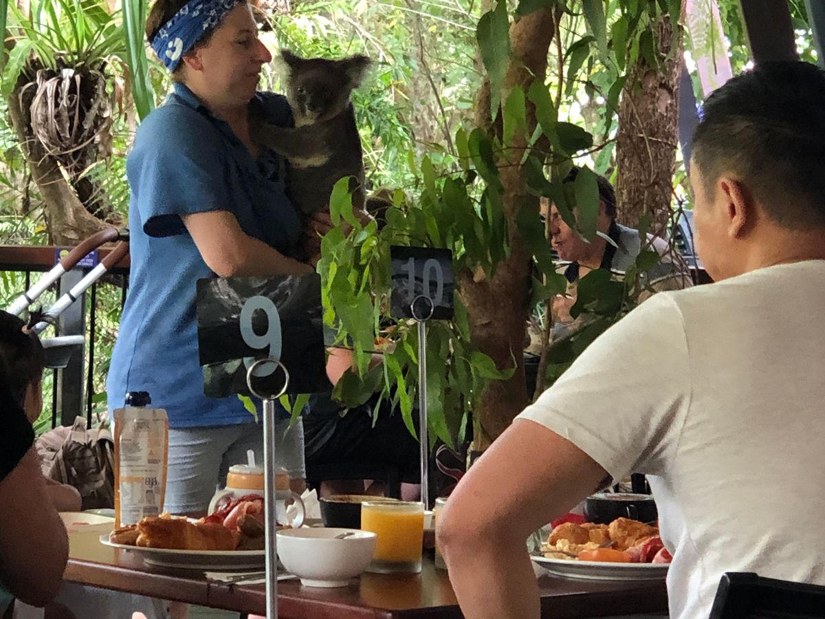 食事の場所には、コアラと朝食を申し込んでいる人しか入れないので、周りの人達はコアラは見えますが触れません。なかなか長時間(30分)触れないのでオススメです。朝食を食べている人達で変わりばんこで近づけます。終わりの方は独占状態でした。