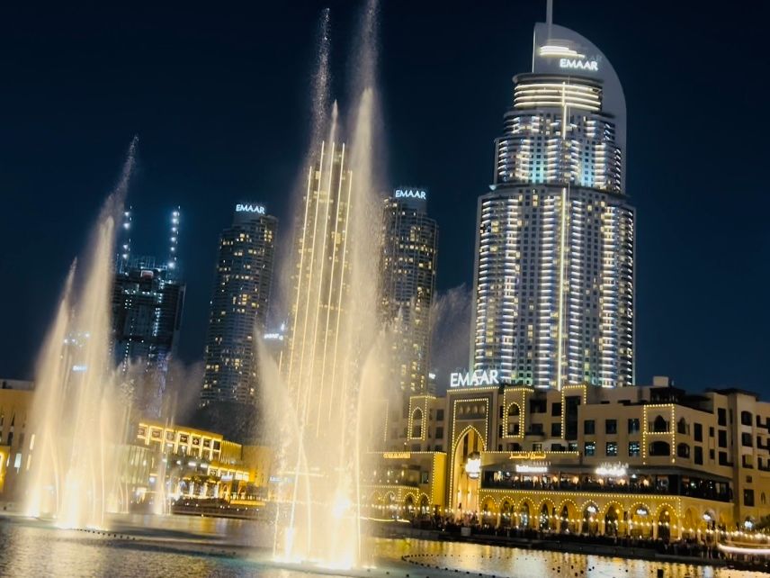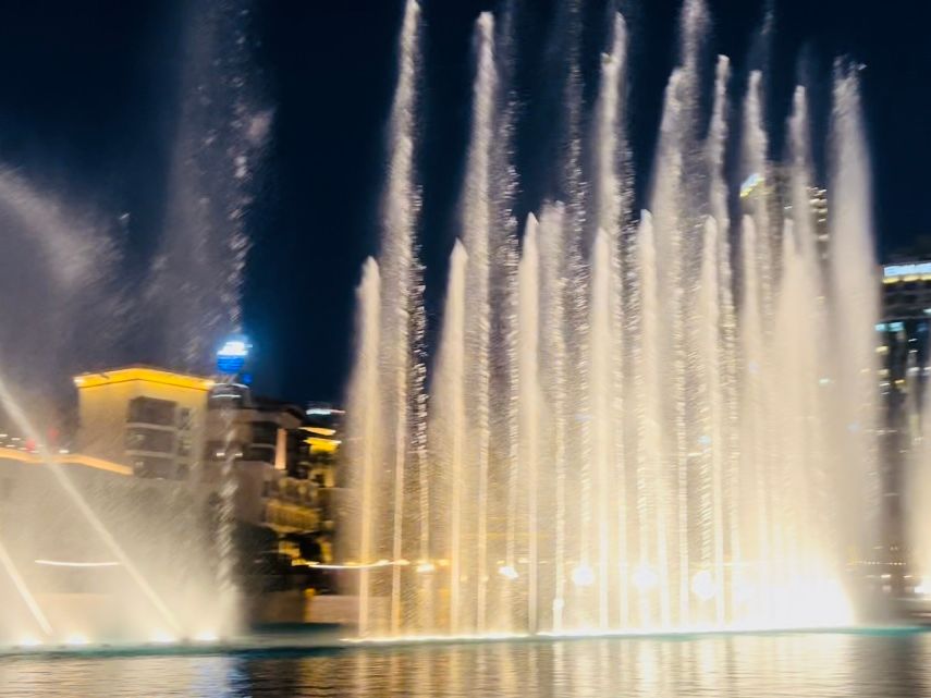 5分程度の噴水ショーでしたが、近くで見られたのでよかったです!ただし見ている場所によっては濡れてしまうかも…。行った時期は朝と夜は肌寒く、私たちが見たのは19時頃だったので、羽織るものを持って行った方がいいです。