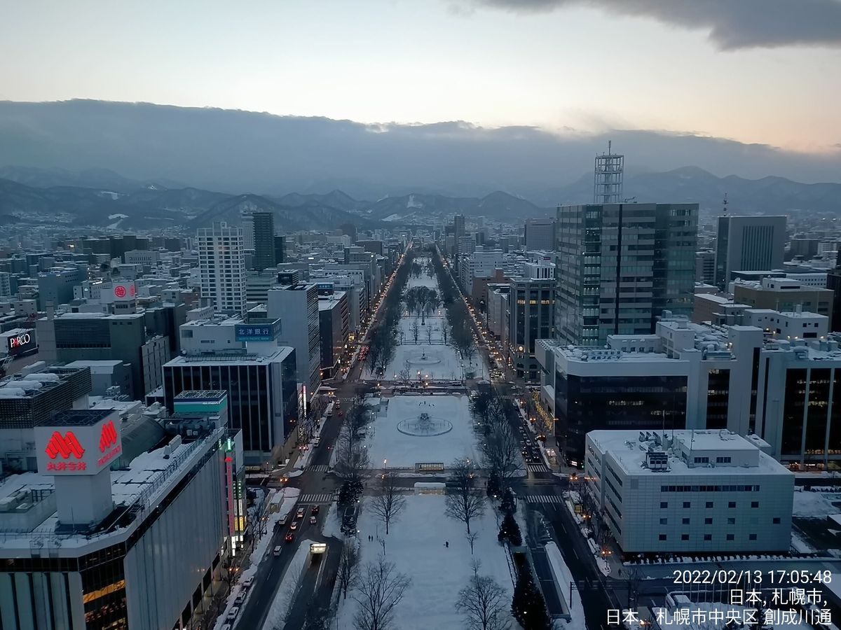 完全に暗い時よりも建物の形がわかり街灯が付き出した頃が夜景に奥行が有って綺麗でした。冬の大通公園は足場が悪いのでスノーブーツが必要でした。