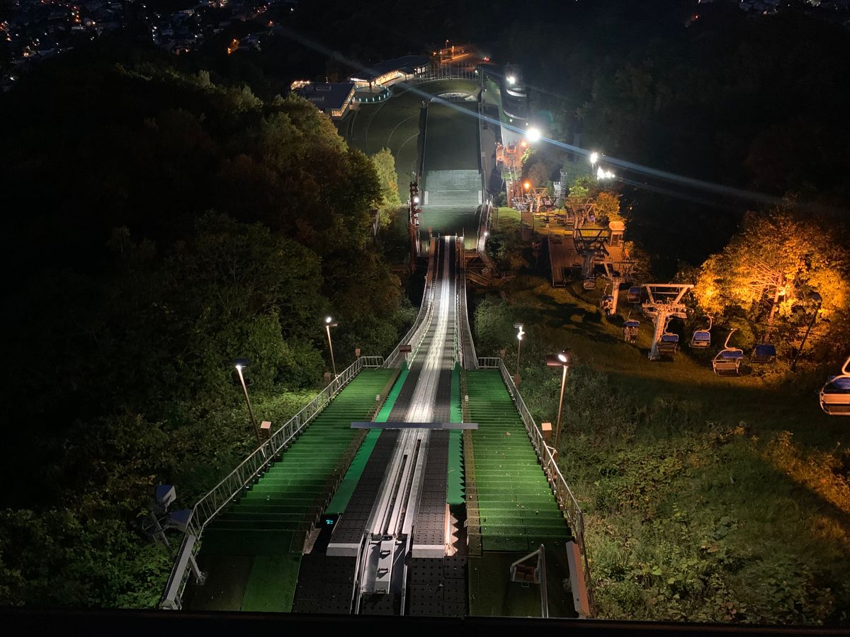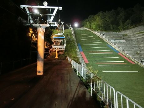 メインの夜景はリフトで5分かけてジャンプ台の上まで行きます。