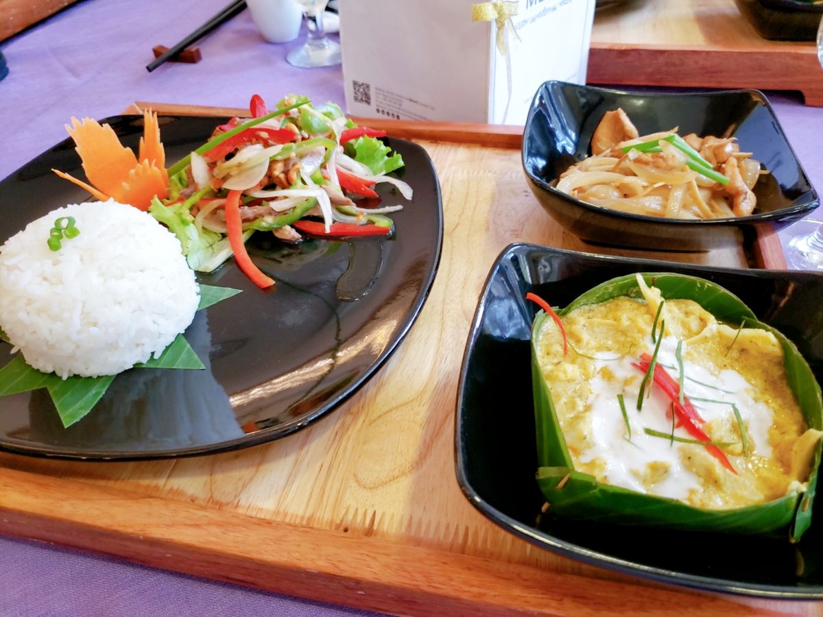 ビュッフェスタイルの夜ご飯は、肉、魚、ケーキなど種類が多く、どれもとても美味しかったです。