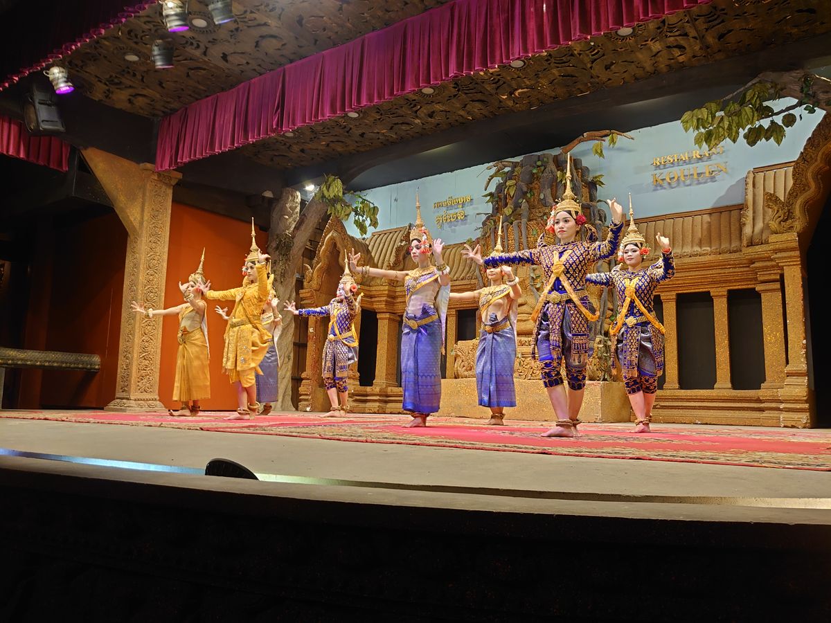 お昼はカンボジア料理のコース、夜はアプサラダンスを見ながらカンボジア料理のバイキングでした。