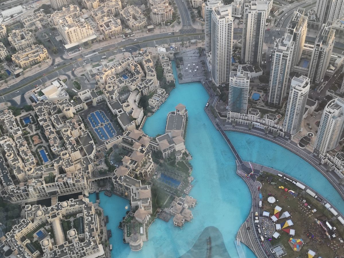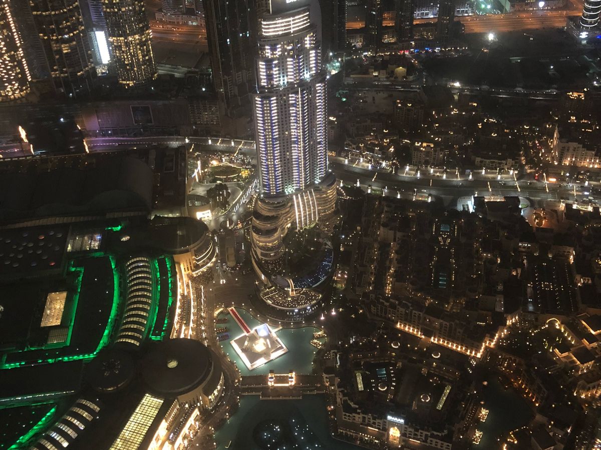 さすが世界NO.1の高さブリジュ・ハリファ!!あまりにも高すぎて、周りのビルが低く見える。夜は下から見るのと上から見る噴水はまったく違った感覚で見れて、とても良かった。日が沈むちょっと前に上ると明るい風景と夜景の両方を楽しめる。