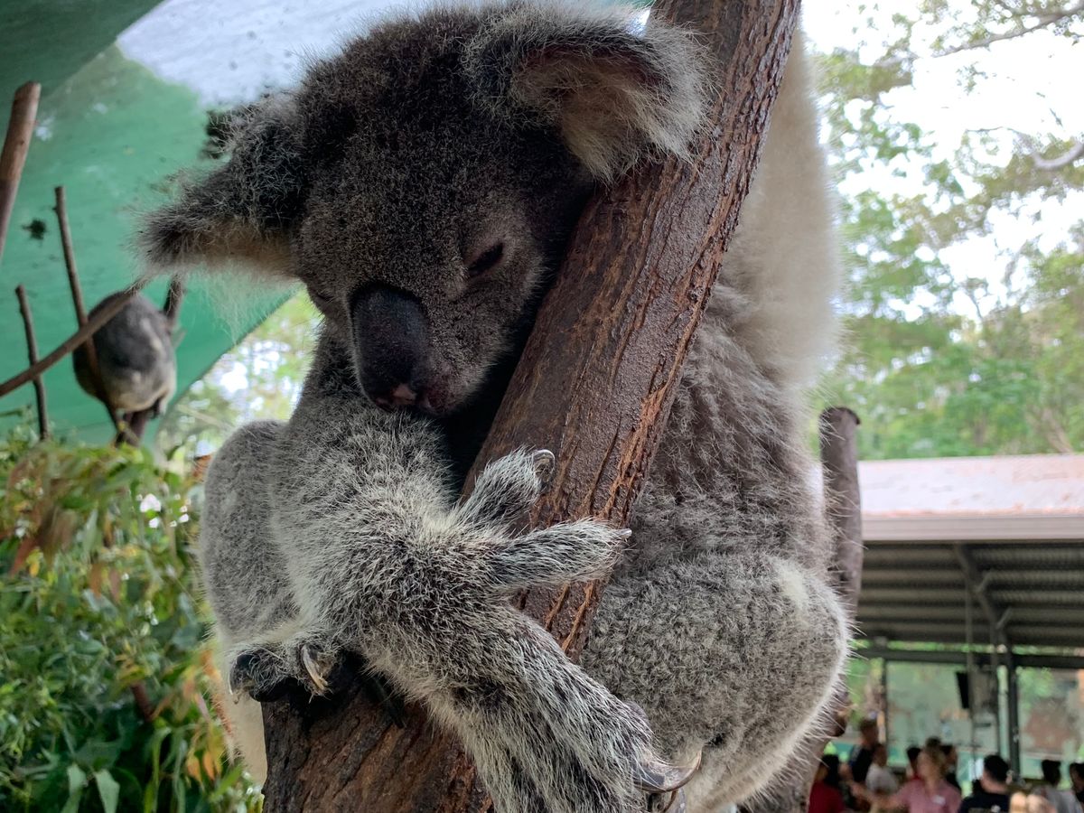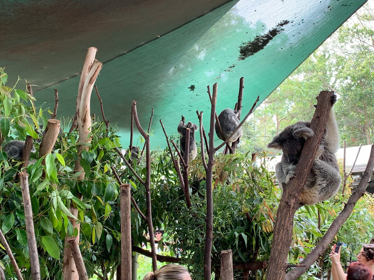 たくさんのコアラがいる飼育エリアに入って飼育員さんの話を聞きながら約25分ほどコアラを間近で見ることができます。英語での説明なので、英語が得意でない私は半分も理解できなかったけど、身近というか手を伸ばしたら触れる距離でスヤスヤ眠るコアラをみて癒されました。
