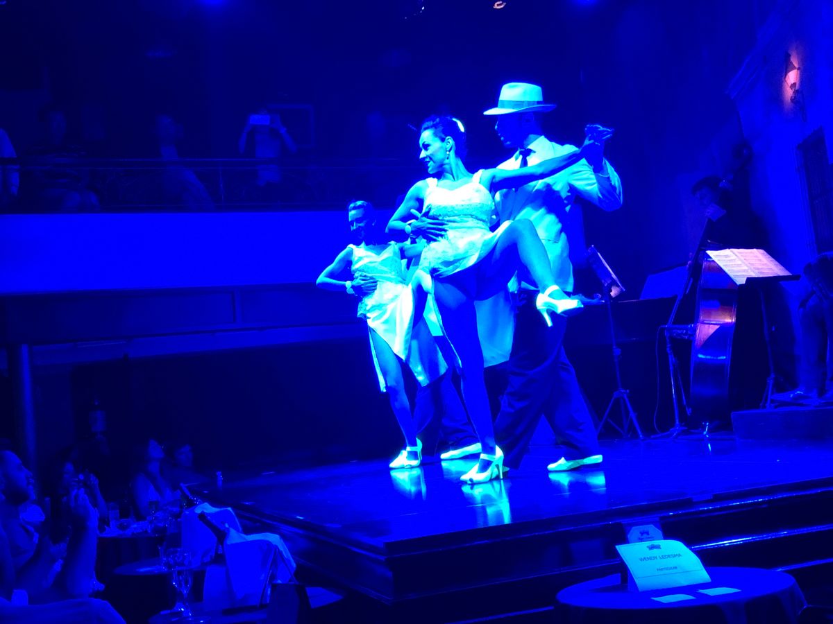 ディナー付のコースで参加しました。料理はとても美味しくワインも1本付いて充分過ぎるくらいです。ショーは1時間半ですが素晴らしくあっという間に時間過ぎてしまいます。36年前にブエノスアイレスで見たタンゴとは大きく違っていてモダンな印象を受けました。当時は初めて見る者にも踊りで男女の切ない哀愁が強烈に心に迫りましたが今回の見たタンゴは別物でした。今は現代風にアレンジされてるようです。個人的にはかつて見たタンゴをもう一度見たい。