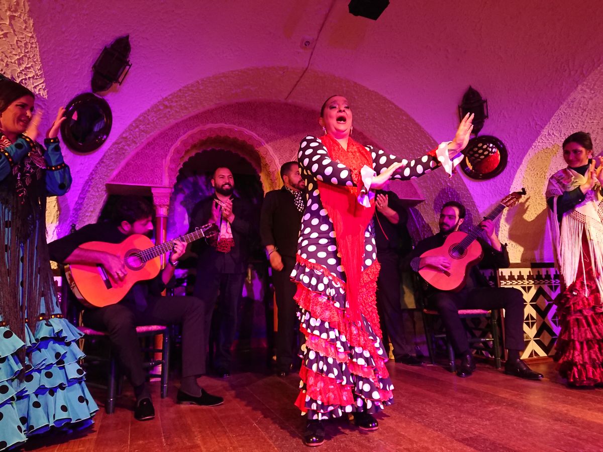 メインのフラメンコですが、席は最前列を案内していただき迫力満点でした。女性のイメージがあったのですが、男性のダンスありギター演奏ありと色々な演目で楽しめました。ワイン1ドリンクも付いていましたが、ショーの迫力が凄くて飲んでる余裕がなかったです(笑)。