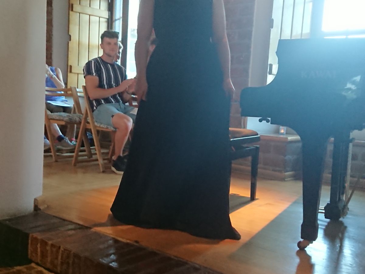 会場はワルシャワの旧市街の一角。ピアニストは女性でした。始まる前に主催者のあいさつがあり、その後に前半の演奏。最初はショパンの「ノクターン」でした。中間でドリンクタイムがあり、中庭に出てシャンパンをいただきました。全部で5曲程度でしたが、最高のひと時でした。