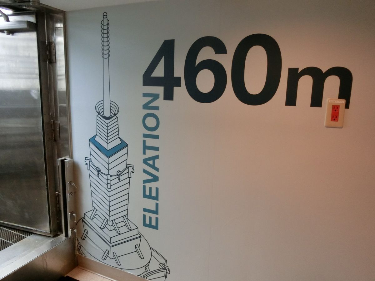エレベーターを三回乗り換え、地上460mフロアへ。雲が絶えず下を流れていく景色は美しく、言葉にならないほど感動しました。12月の屋外でとても寒かったので、冬場は防寒対策をした方が良いと思います。とても楽しい貴重な経験が出来ました。