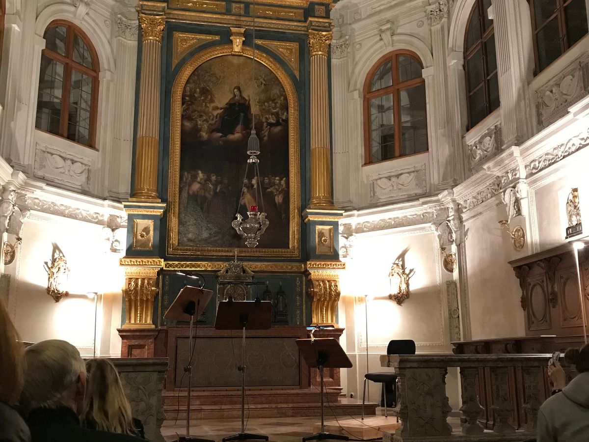 バロック音楽のバッハとビバルディの有名な演目が一部 二部と各約45分間 10人編成で演奏されました。宮殿内でバロック風の衣装や生で聞く プロの演奏に感動しました。