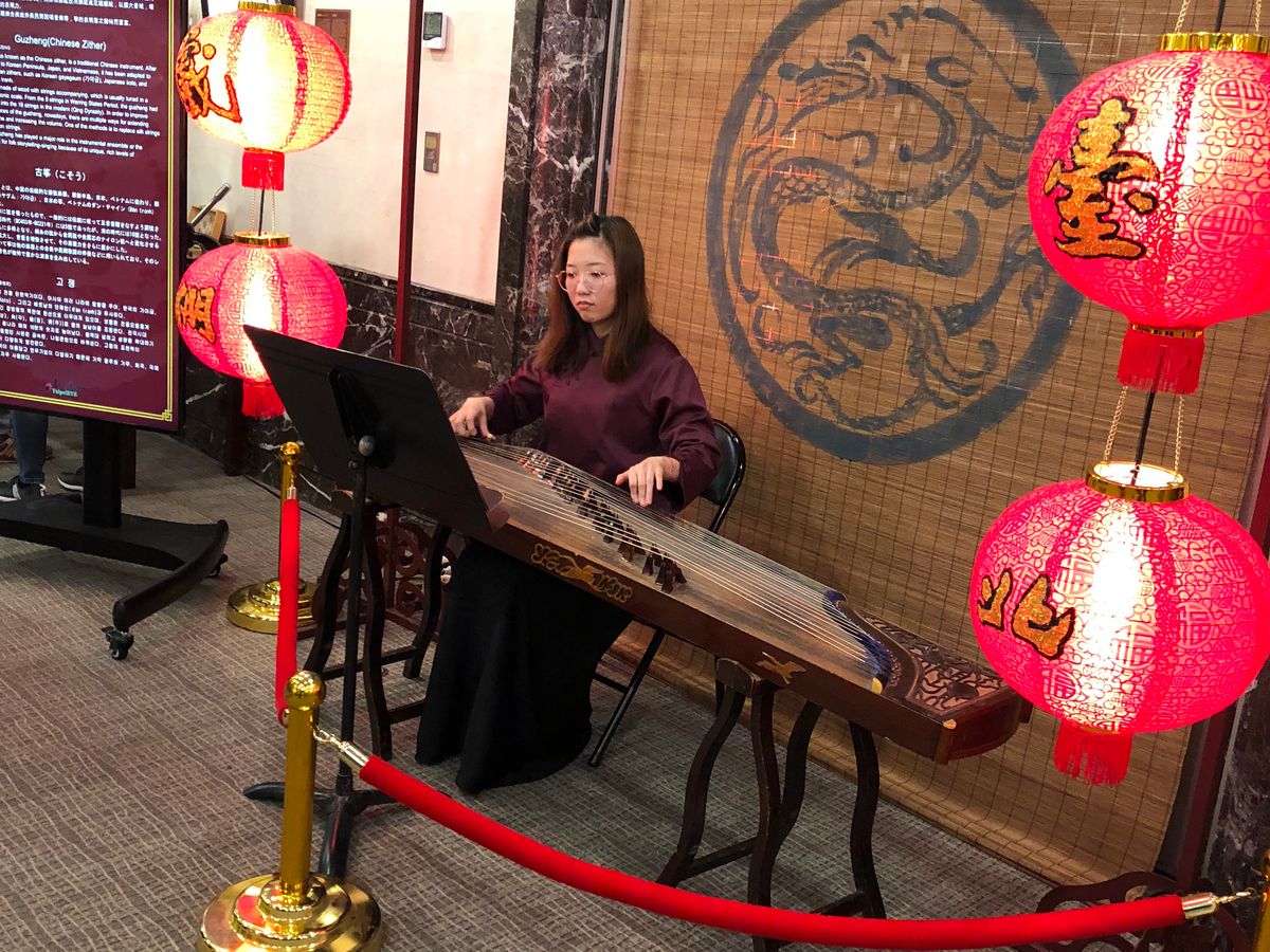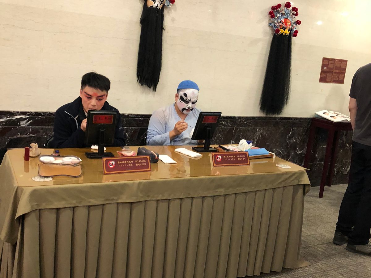 席を取ってロビーに戻ると箏の演奏や俳優さんのお化粧をしていたり、切り絵のブースがあったりして、衣装を着せてもらい写真を撮ってもらいました。京劇はちょっと長いかな、と思いましたが面白かったです。終演後には猪八戒と写真を撮ってもらえて記念になりました!