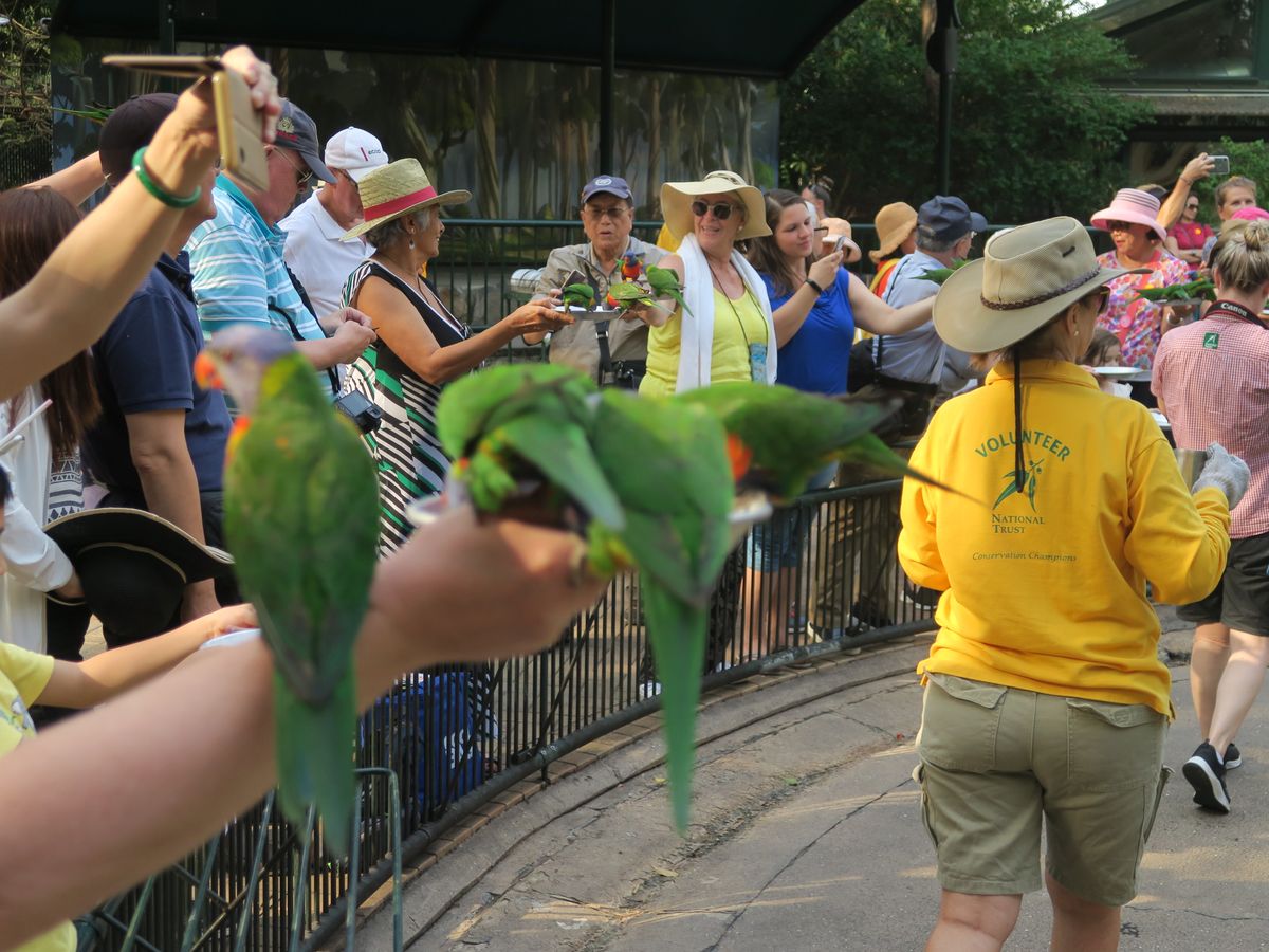 ゴーエクスプローラーカードを利用して700系統、カラビンワイルドサンクチュアリバス停下車。一日タップリ遊ぶことができます。入場券売場には日本人スタッフもおられました。日本語のタイムスケジュールのパンフレットを貰い、園内散策、羊の毛刈りショーやバードショー等々見ながら、コアラを抱っこしての撮影時間を待ちます。午前と午後、1回づつの特別な撮影なので、時間は厳守。少し遅れても合流する方もおられましたが、コアラの近くに居られる時間が短くなりますよ。柵の外にいる人達から羨望の目を浴びますが。その後コアラを抱っこしての撮影になります。ツアーは英語のみですが、何とかなりました。コアラの事を色々説明してくれていうようでした。殆ど理解できませんでしたが。でも絶対お勧めのチケットだと思います。最後の鳥の餌やりも絶対参加して下さいね。カンガルーにも触りながら餌やりも出来ますよ。