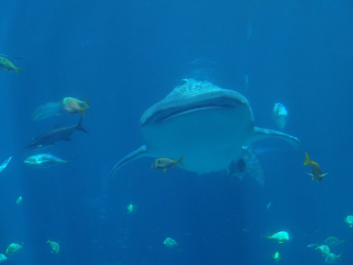 ジョージア水族館は、大きなシンベイザメが3匹もゆったりと泳ぐ姿を堪能できます。