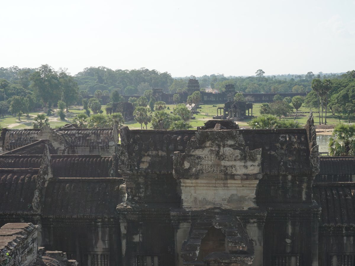 ツアーガイドさんの説明を聞きながらアンコールトムから回りました。日本のお笑い芸人さんに似た顔があるとガイドさんが言ったときは、実際に見てなるほどと思いました。アンコールワットは川のあるほうから歩いて入っていくと奥のほうに聳え立っていました。ここも説明を聞きながら、第一回廊から第二回廊、寺院の中心部、水を処理する池、当時の人のこだわりや工夫を見ながら第三回廊へ、最上階からは景色が一望できて最高でした。